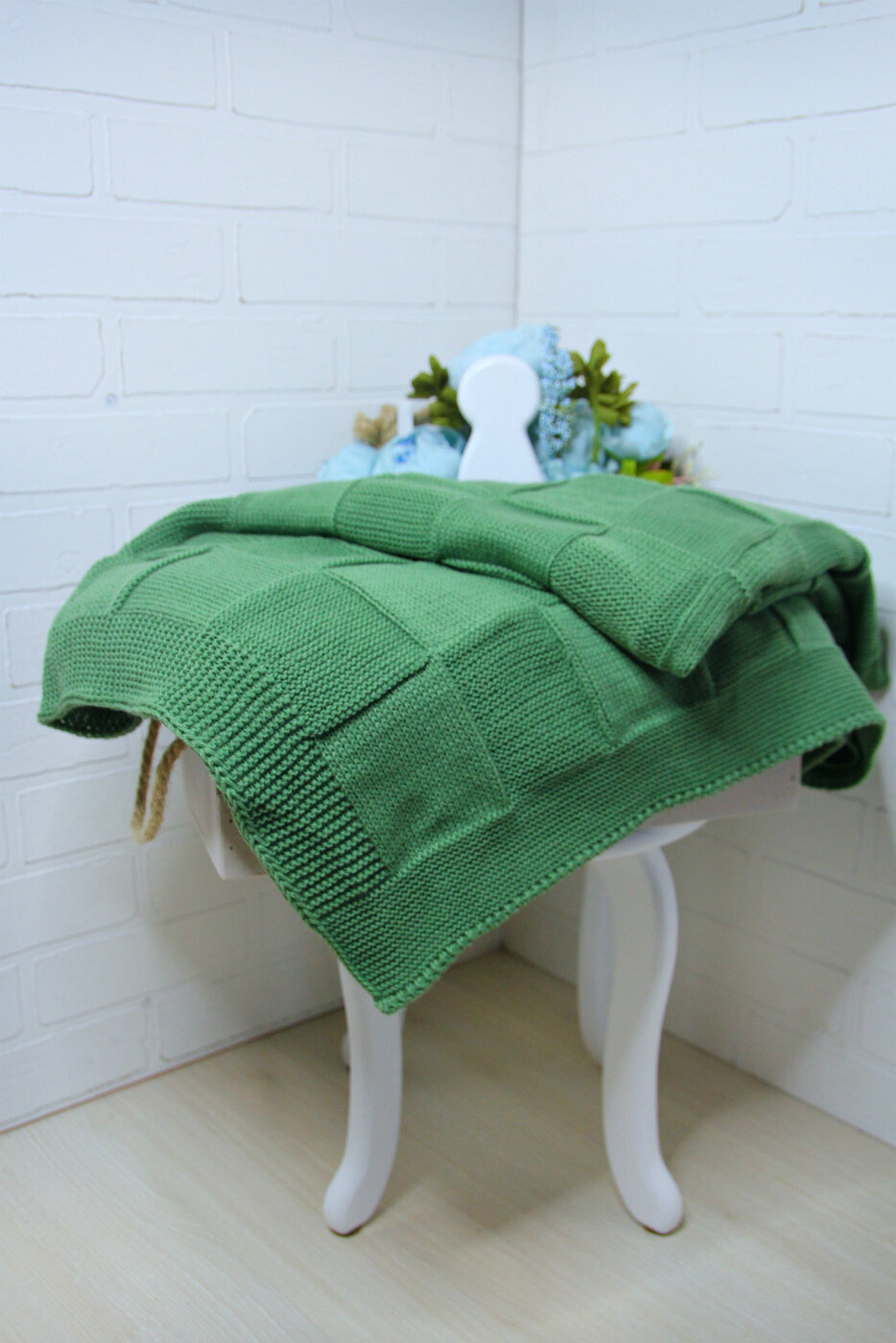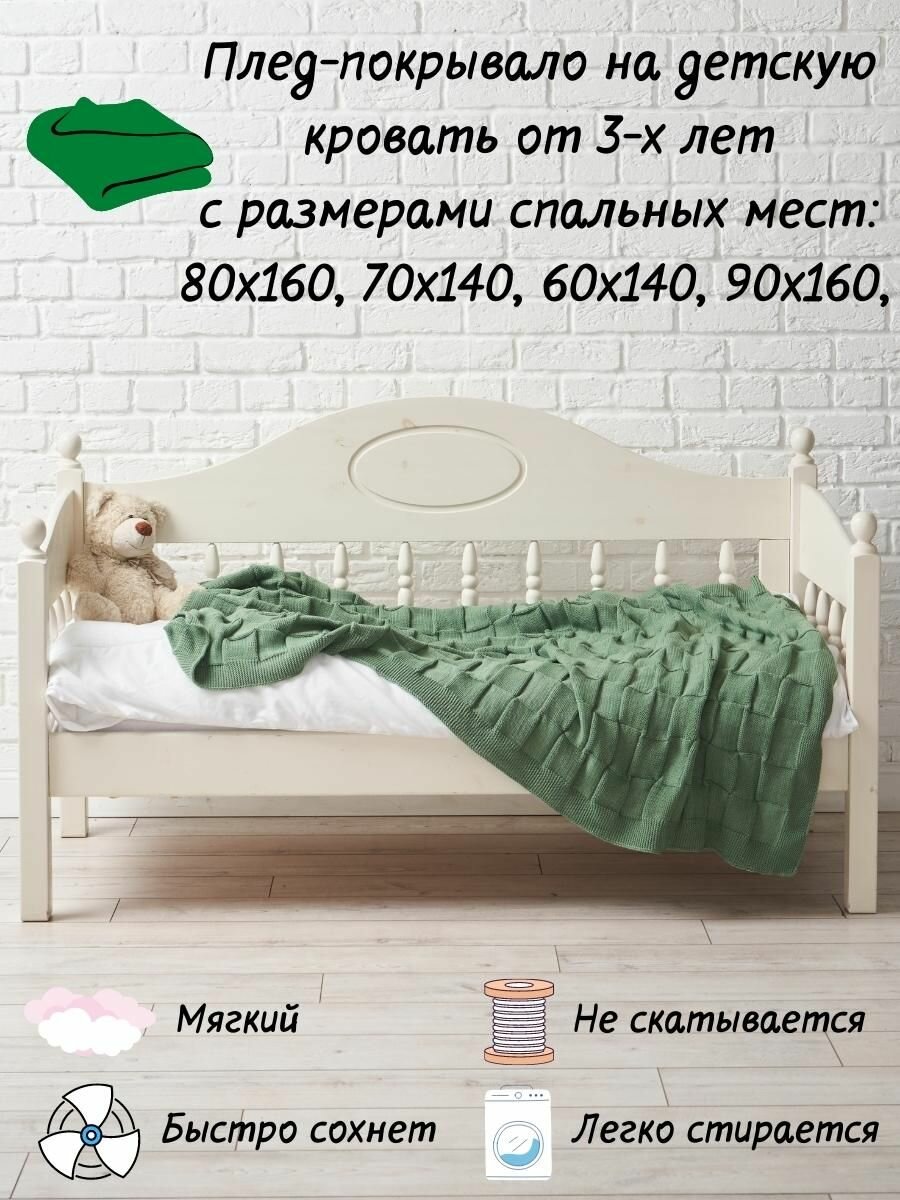 Купить Плед зеленый хлопок вязаный детский на кровать RoyalDream 165х95 см, светло-зеленый