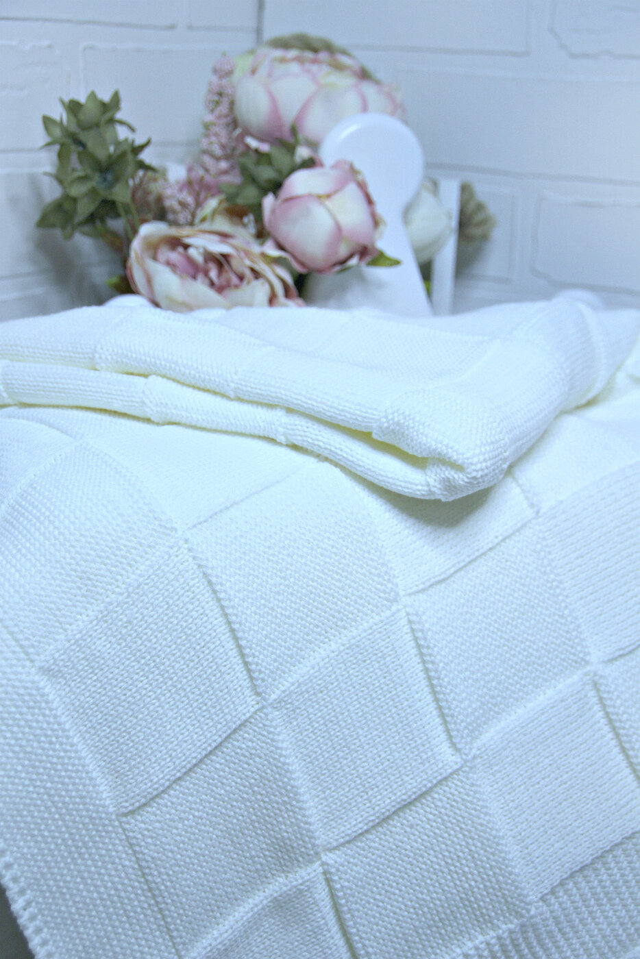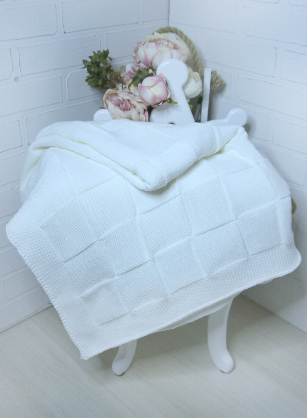 Плед белый вязаный детский на диван RoyalDream 165х95 см интересное: