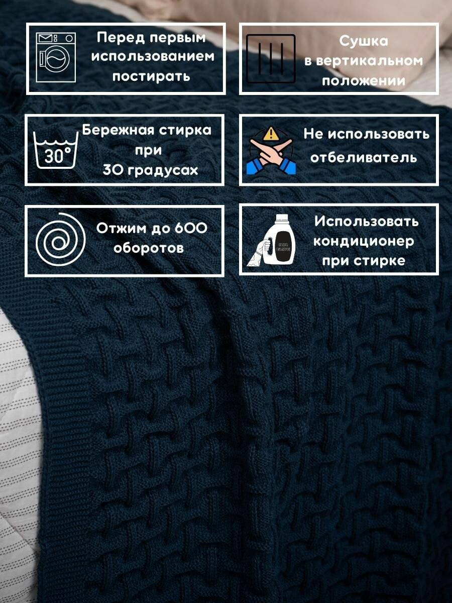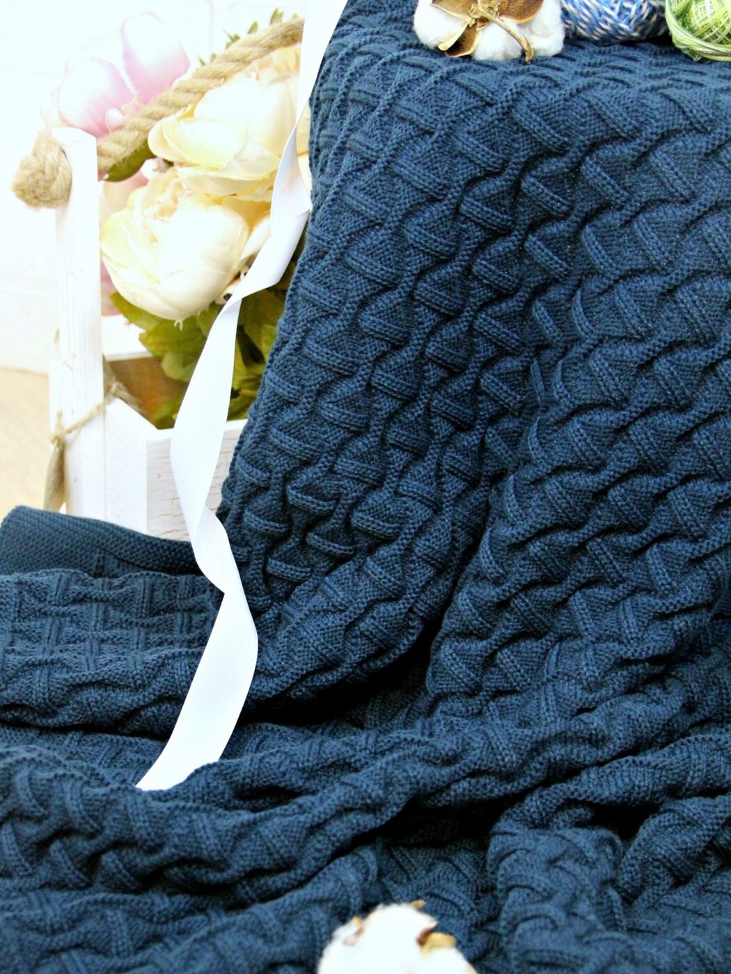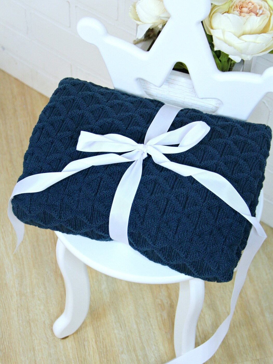 Купить Плед-покрывало вязаный Wave 160х95 см. Морская синева.