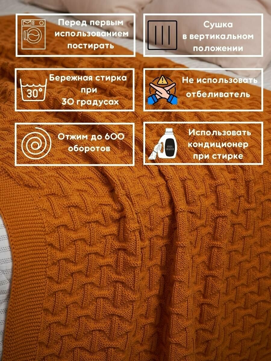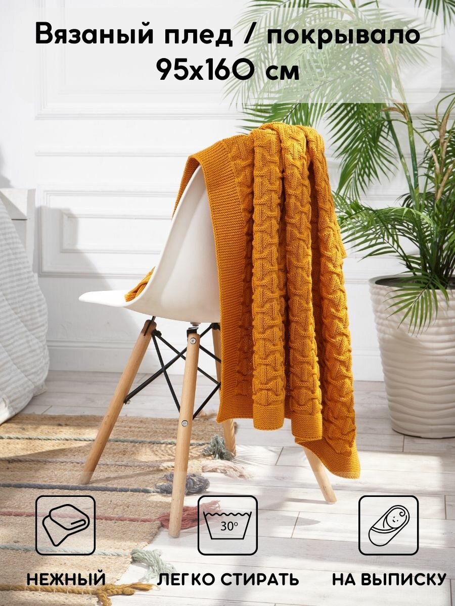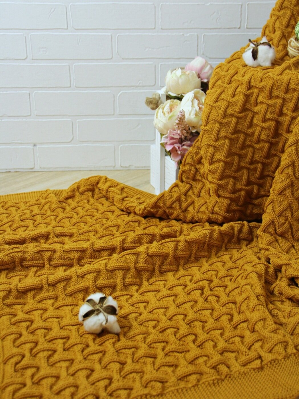 СохранитьПлед вязаный хлопковый на односпальную кровать Wave 160х95 см / горчичный интересное: