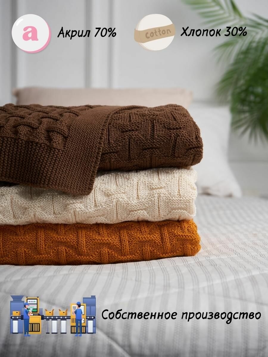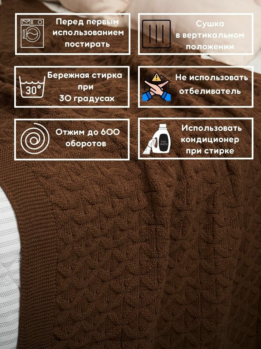 СохранитьПлед на диван хлопковый мягкий вязаный Wave 160х95 см / коричневый интересное: