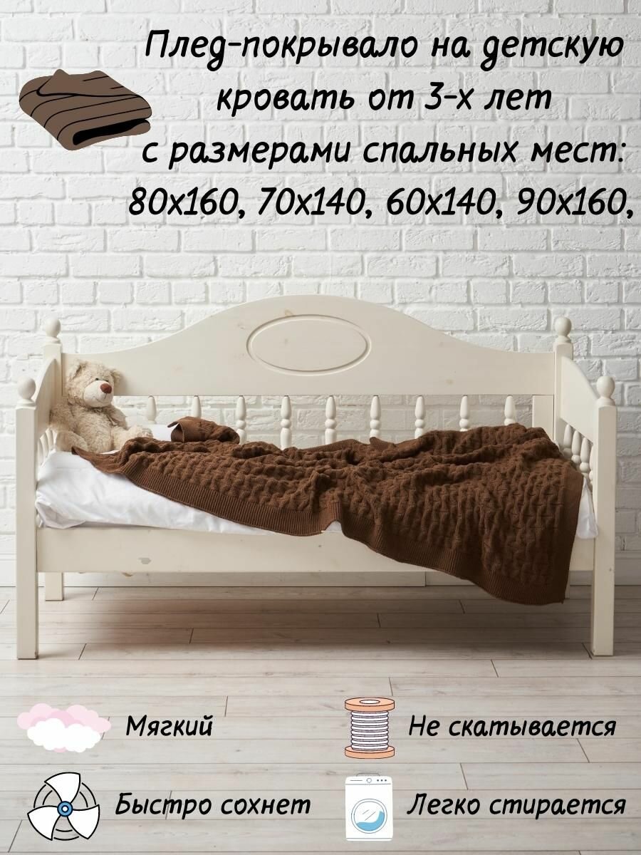 Плед вязаный для дивана 90х160 см , покрывало на детскую кровать