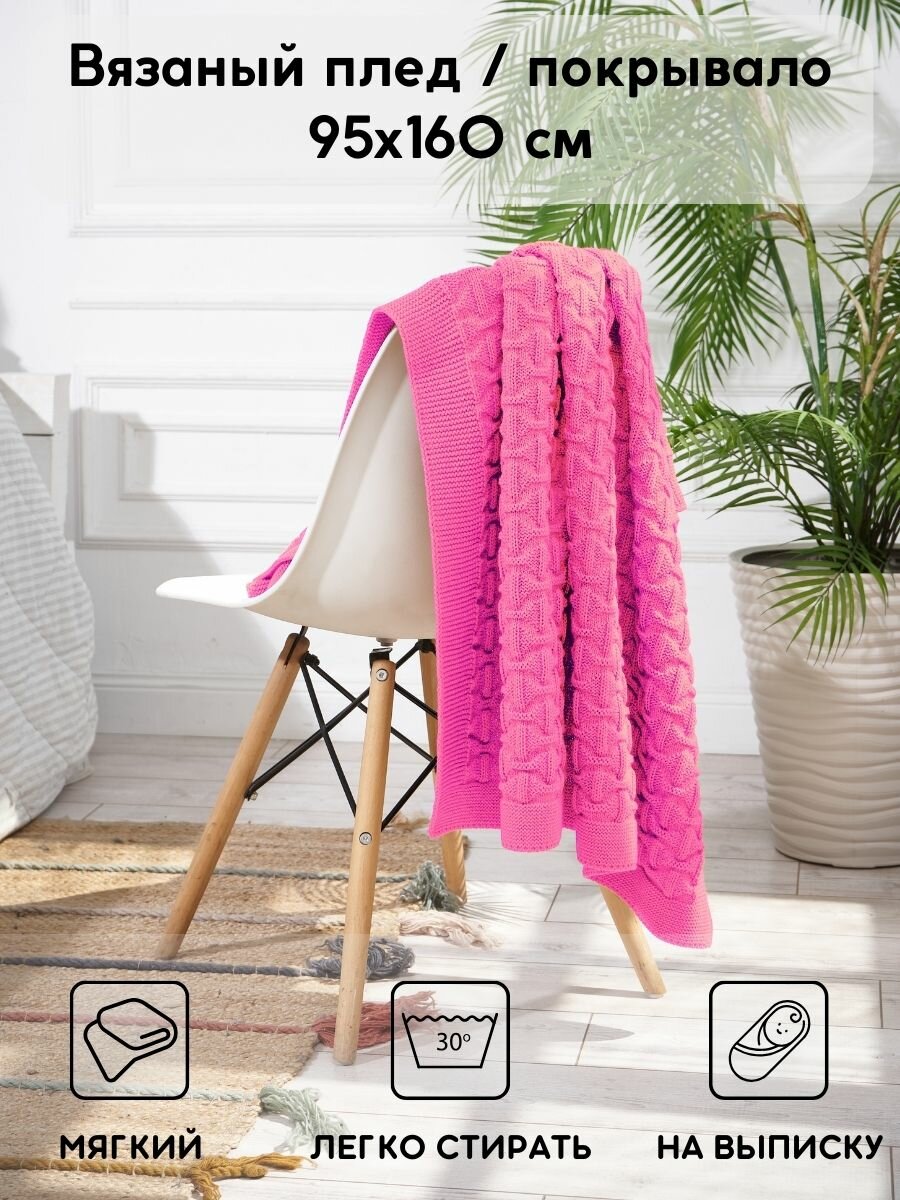 СохранитьПлед-покрывало вязаный Wave 160х95 см. Розовый интересное: