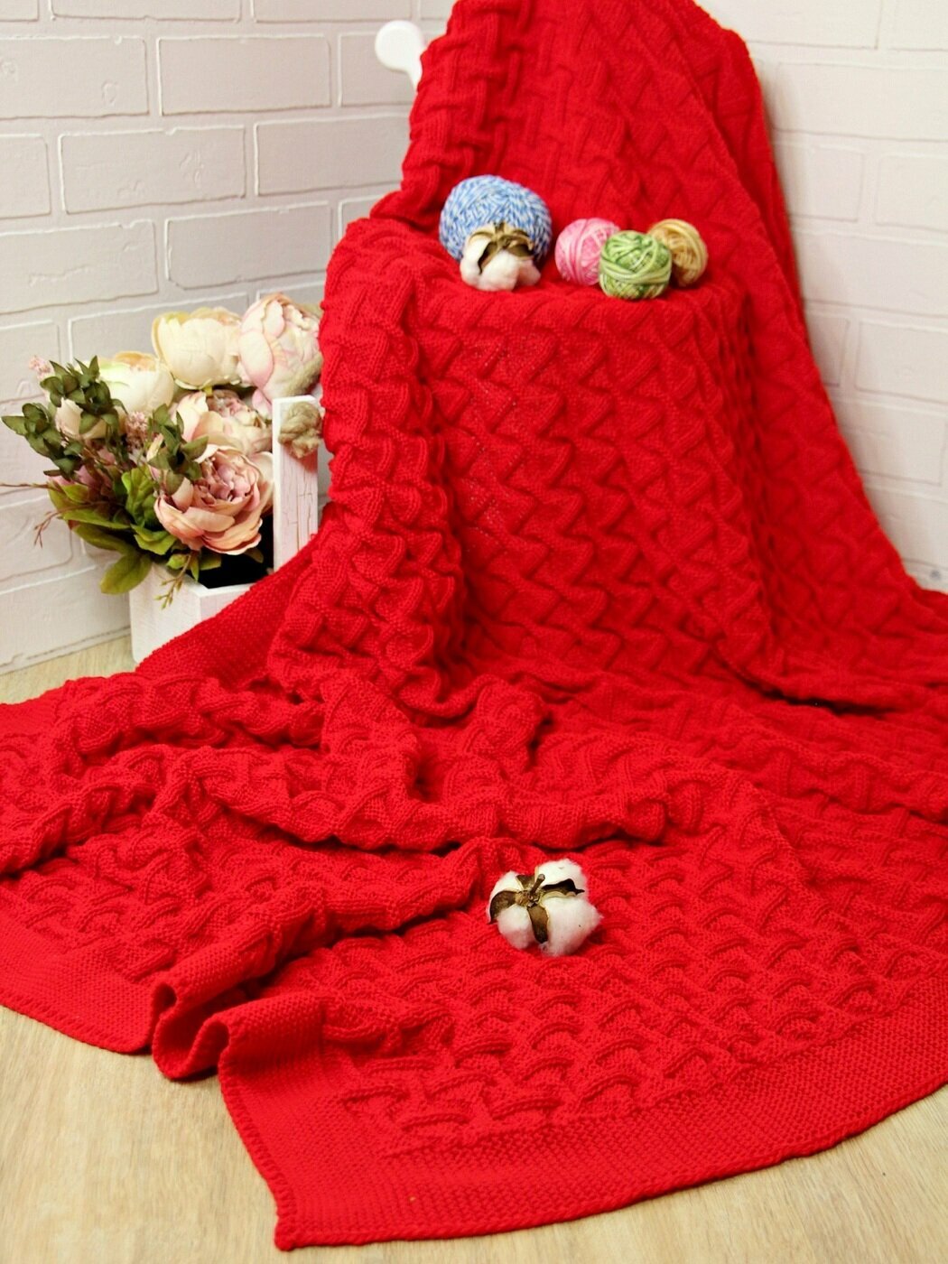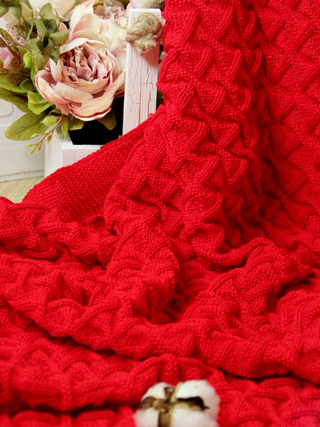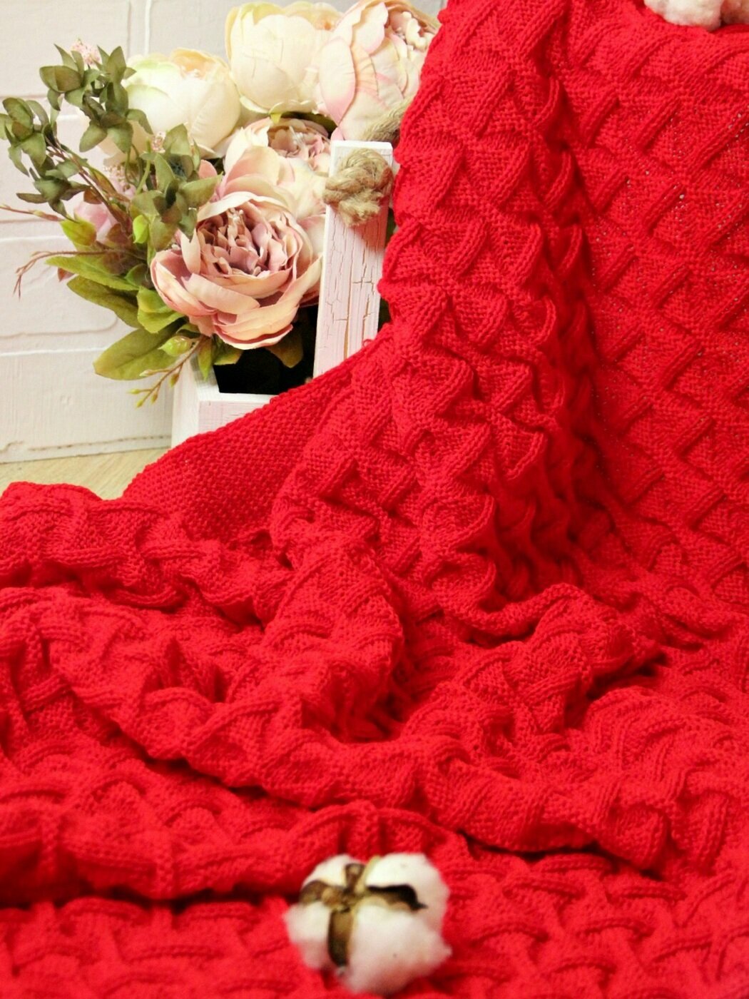 СохранитьОдеяло покрывало вязаное Wave 160х95 см / красный интересное: