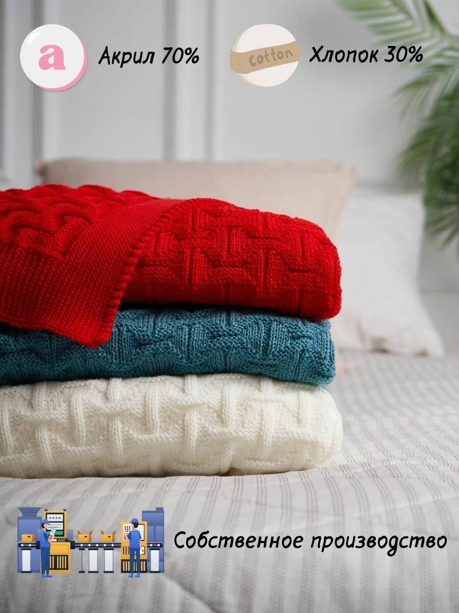 Плед вязаный для дивана 90х160 см , покрывало на детскую кровать
