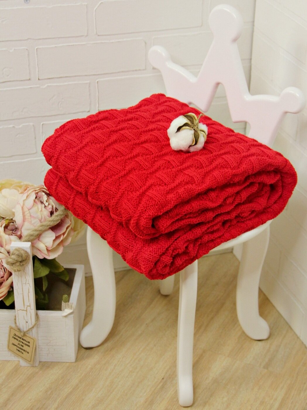Купить Одеяло покрывало вязаное Wave 160х95 см / красный