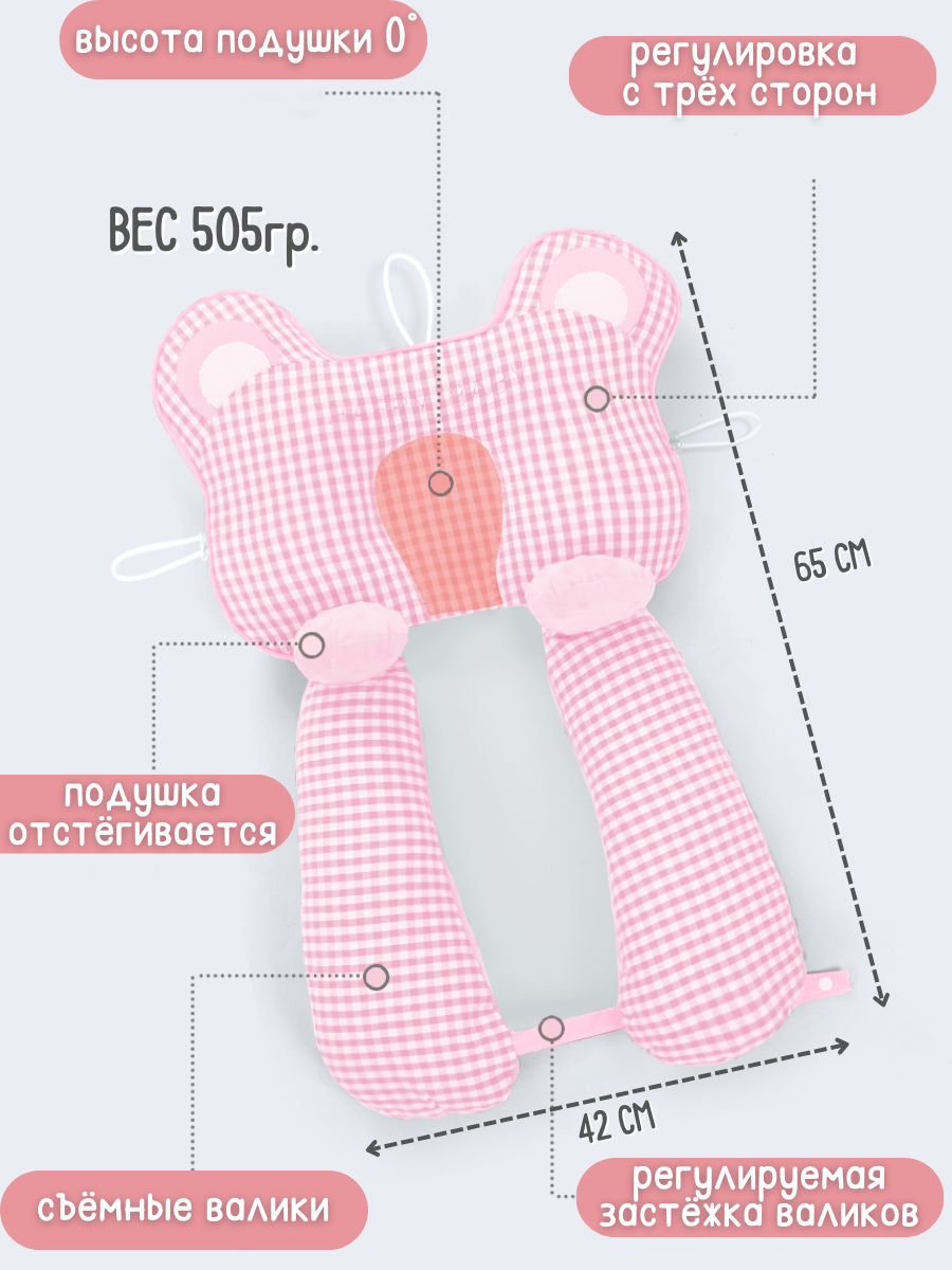 Ортопедическая анатомическая подушка-позиционер для новорожденных, 3в1, двусторонняя, гипоаллергенный, розовый интересное: