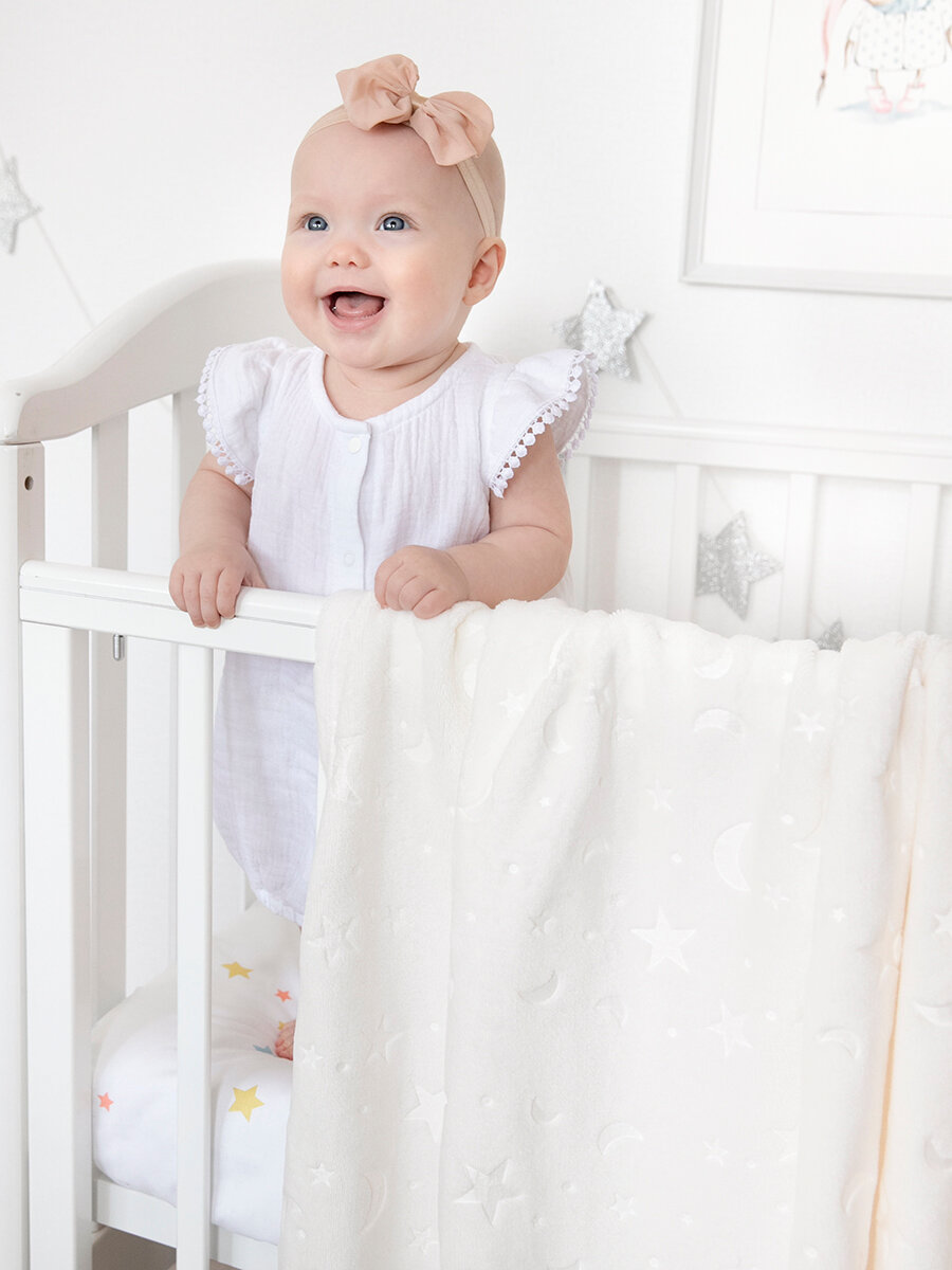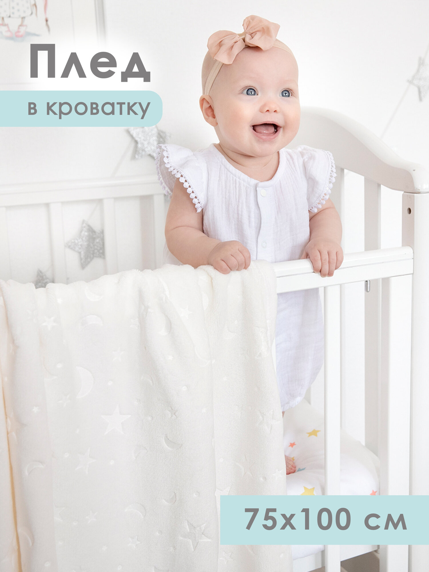 СохранитьПлед для новорожденного 75х100 пушистый детский в кроватку коляску, Tessolo Home "Луны", молочный, белый интересное: