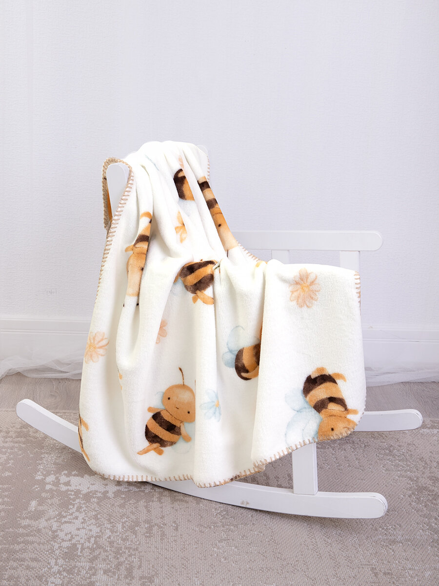СохранитьПлед для новорожденного 75х100 пушистый детский в кроватку коляску, Tessolo Home Пчелки интересное: