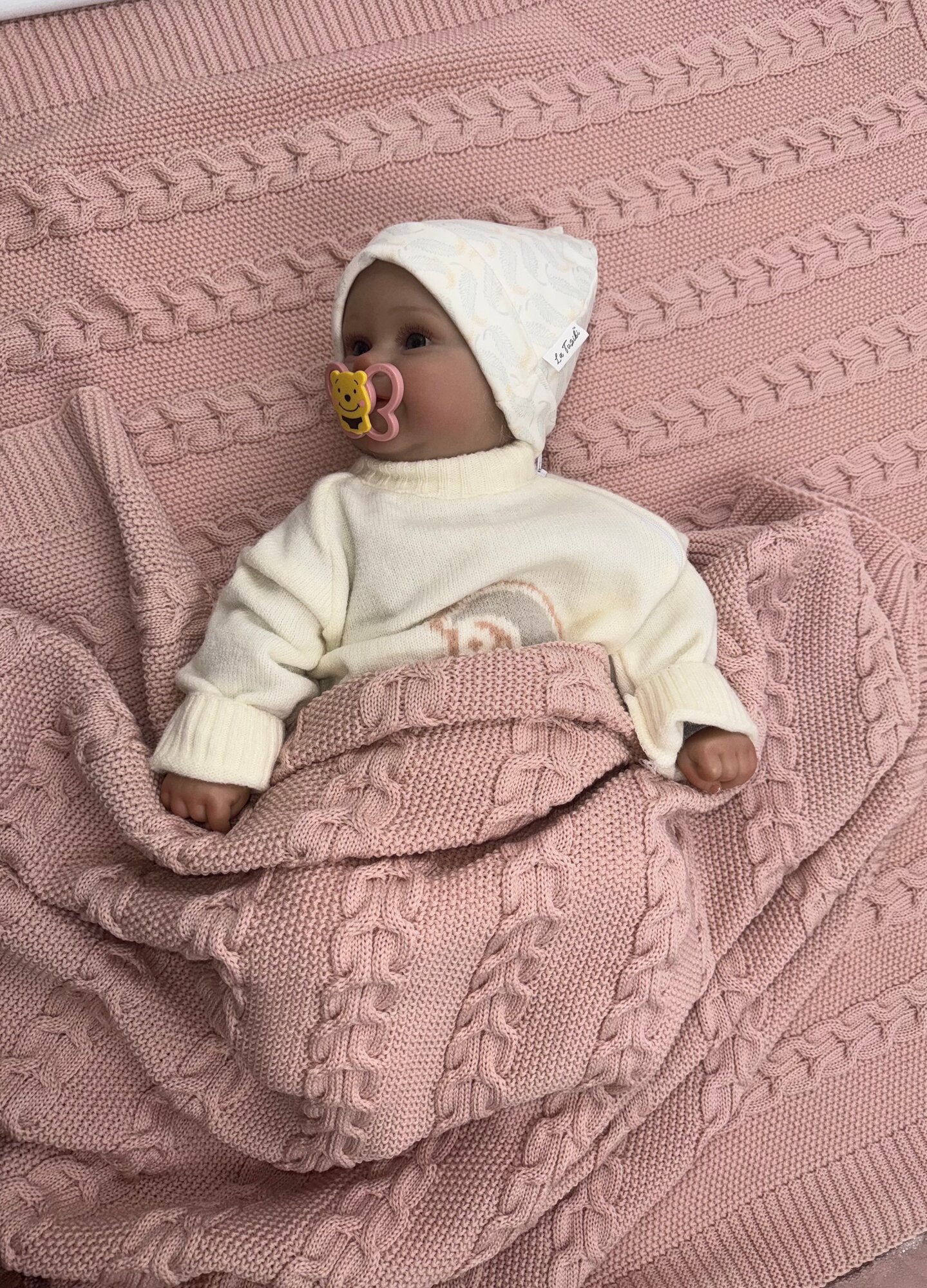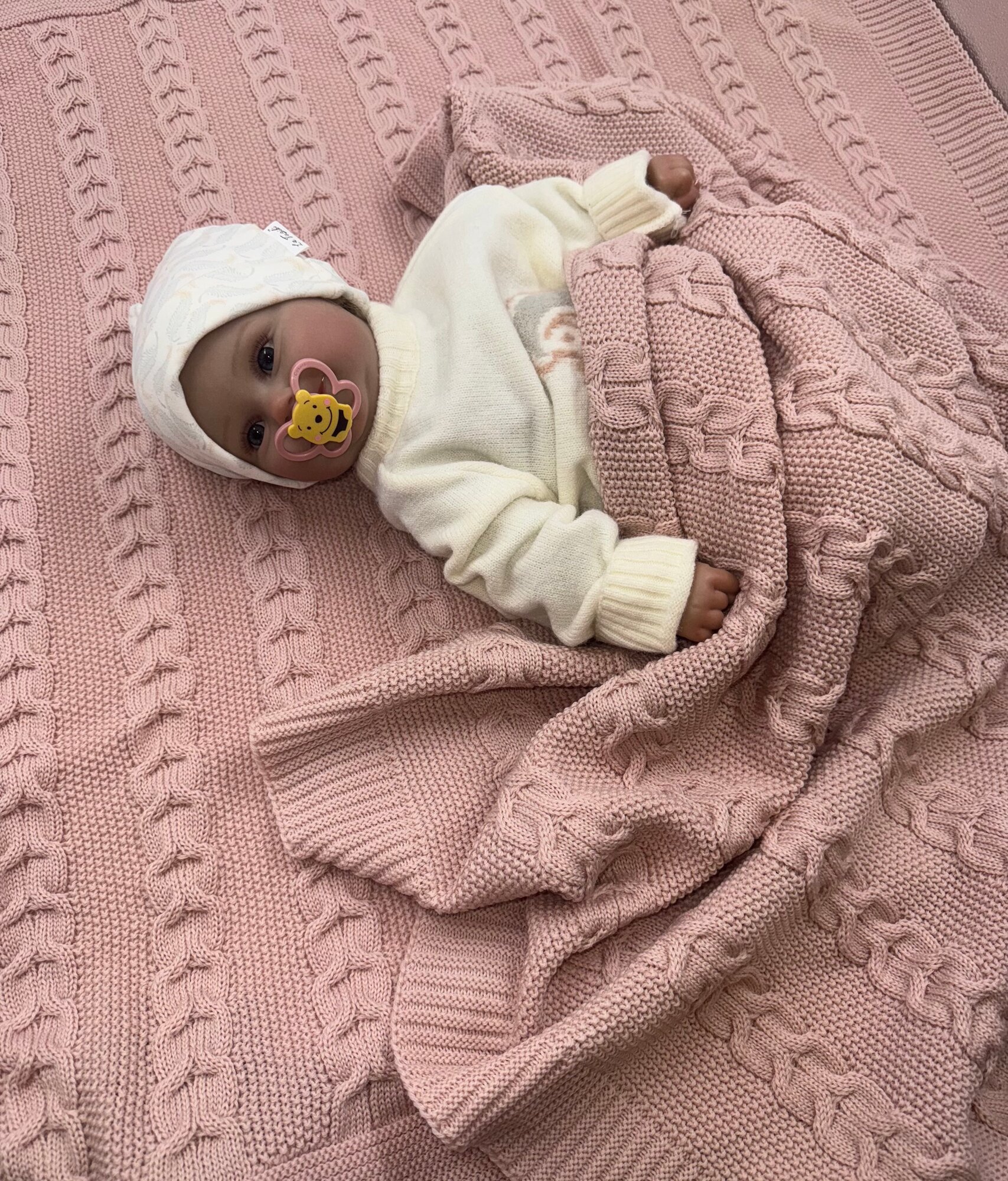 Плед детский вязанный в подарочной коробке La Tuziki / Broche из шерсти длина 90см, ширина 90см