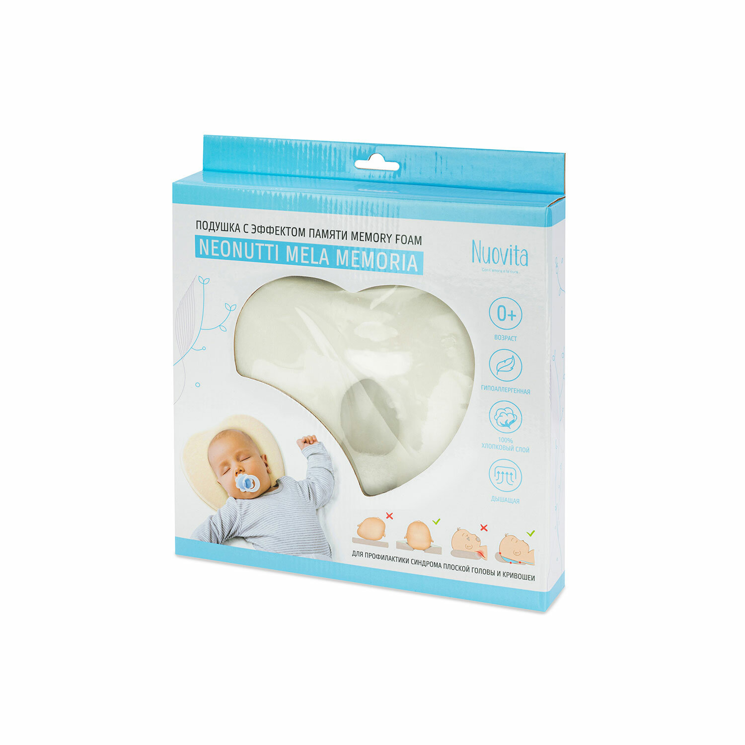 Подушка для новорожденного Nuovita Neonutti Mela Memoria (Bianco/Белый) интересное: