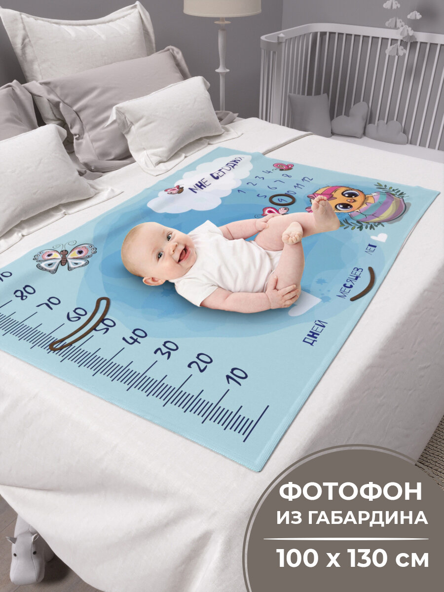 СохранитьПлед фотофон для новорожденных малышей по месяцам из габардина Chick_Blue/162702/ ростомер интересное: