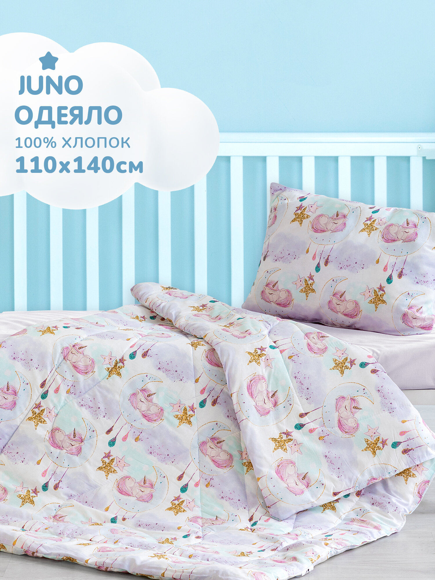 Одеяло 1 5 спальное детское 140х110 Juno, Единорог / Unicorn интересное: