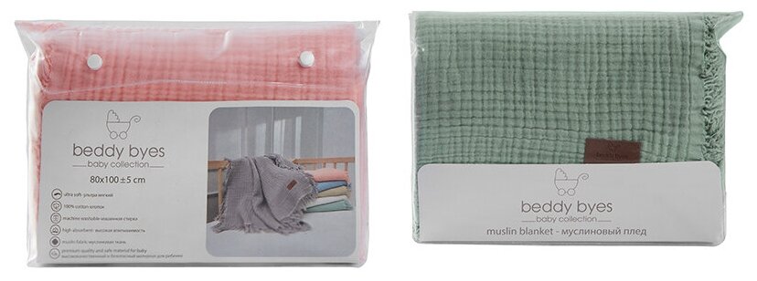 Плед для детей BEDDY Byes (BB 321) из органической муслиновой ткани с бахромой, 100х80, мятный интересное: