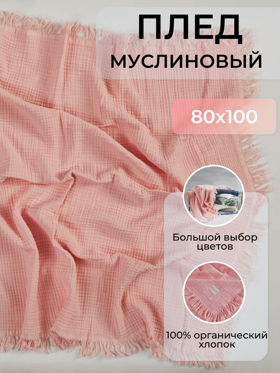 Плед для детей BEDDY Byes (BB 321) из органической муслиновой ткани с бахромой, 80х100, розовый интересное: