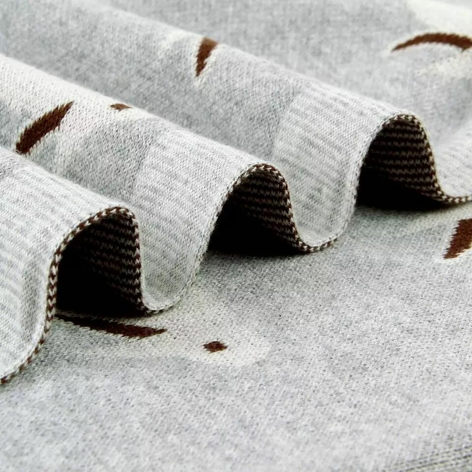Плед детский вязаный для новорожденных малышей LuckyLu 100x80 зайки серые 100 % хлопок интересное: