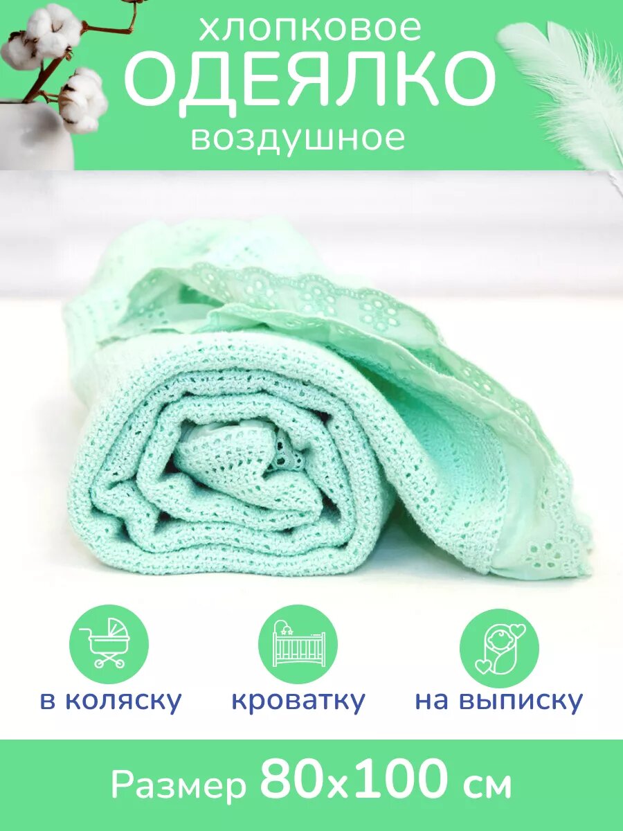 Плед для новорожденного 80х110, вязаный детский хлопок, Tessolo Home, мятный интересное: