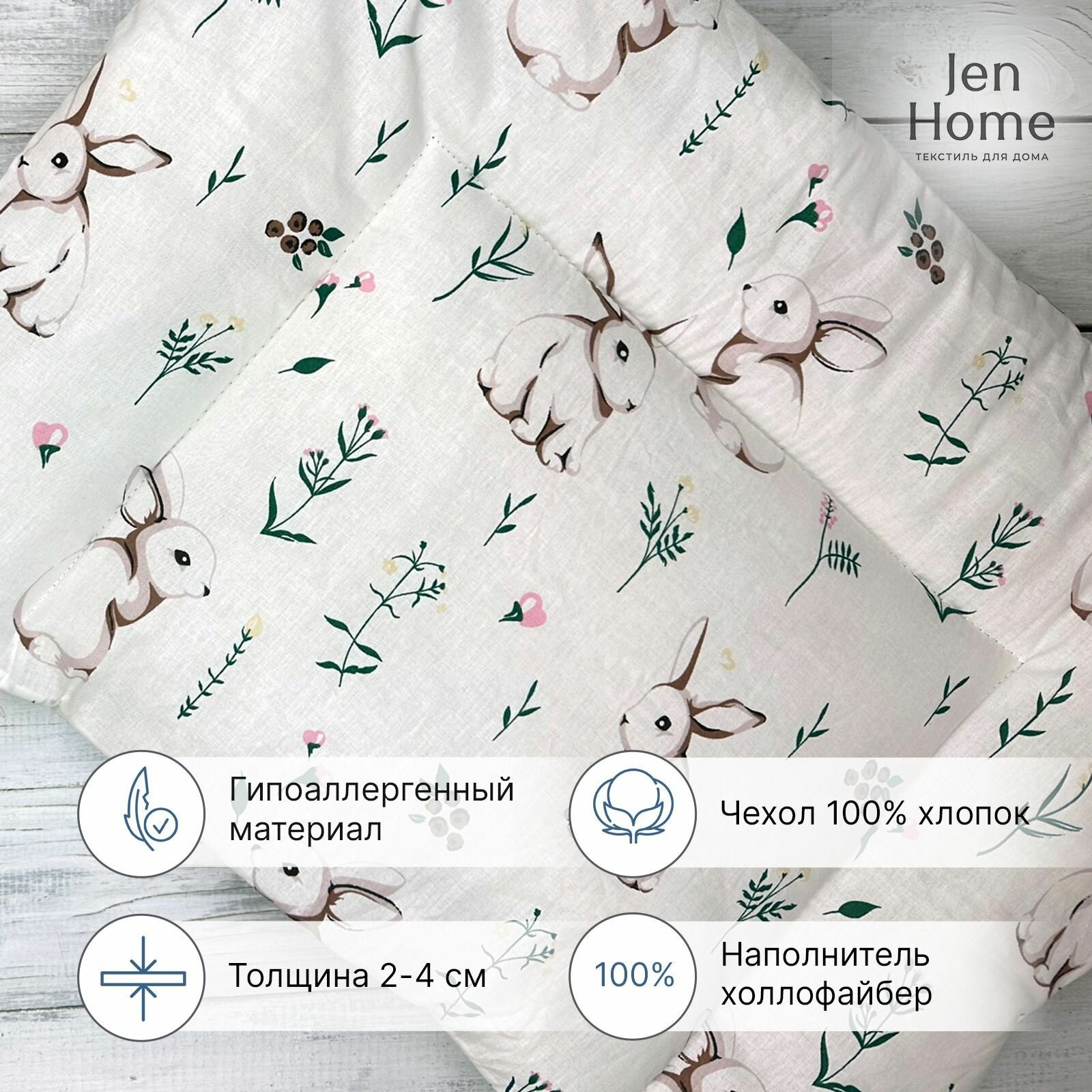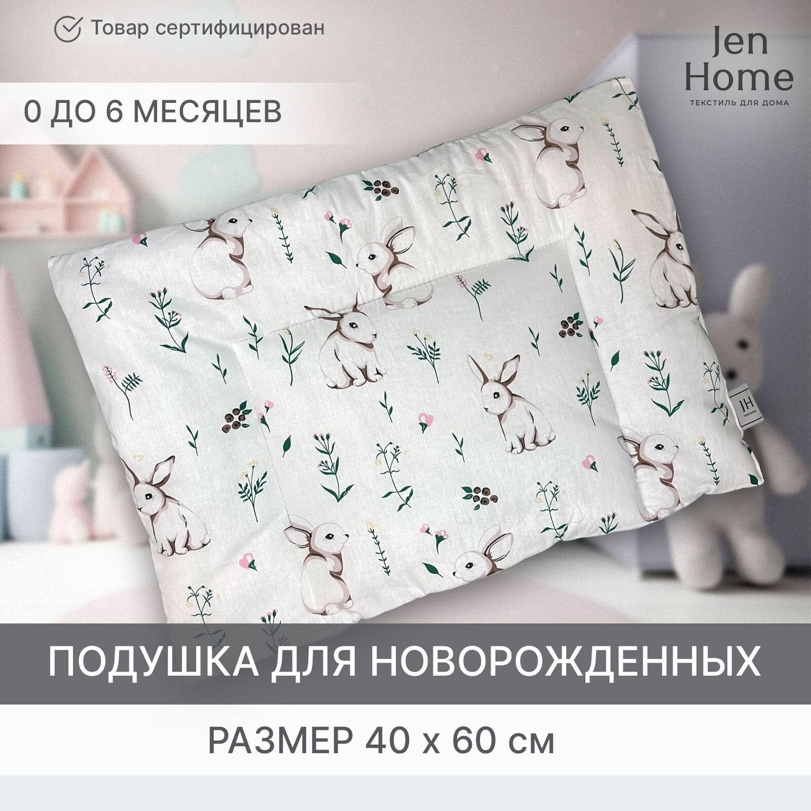Подушка для малышей, гипоаллергенная 40х60 "Зайчики" плоская 0+ интересное: