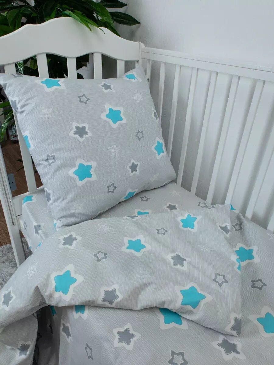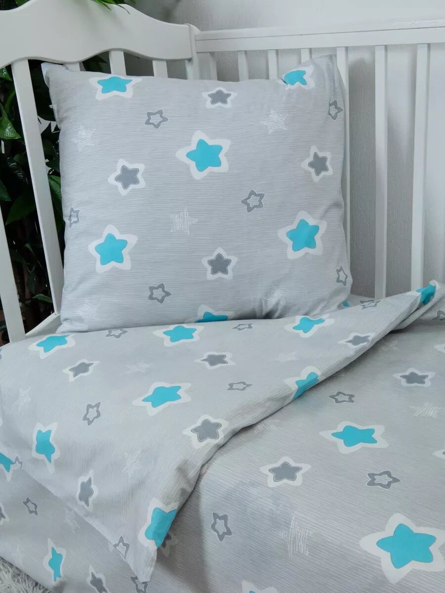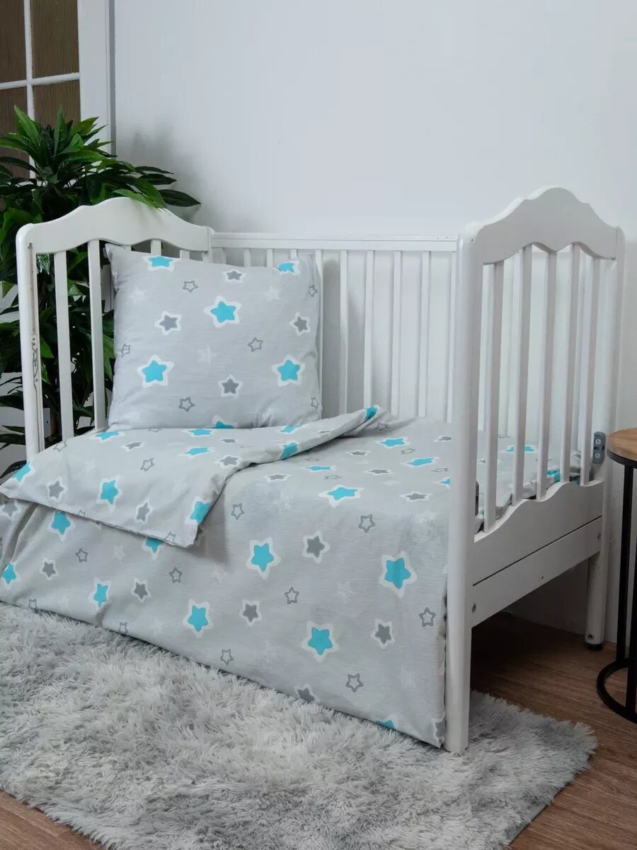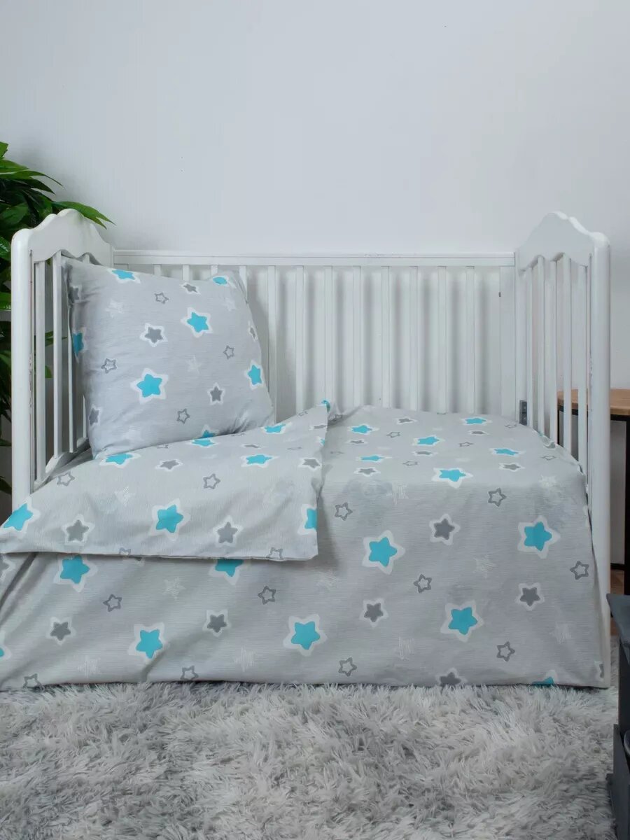 Купить Комплект постельного белья avika, для детской кроватки, бязь, звезды, серый