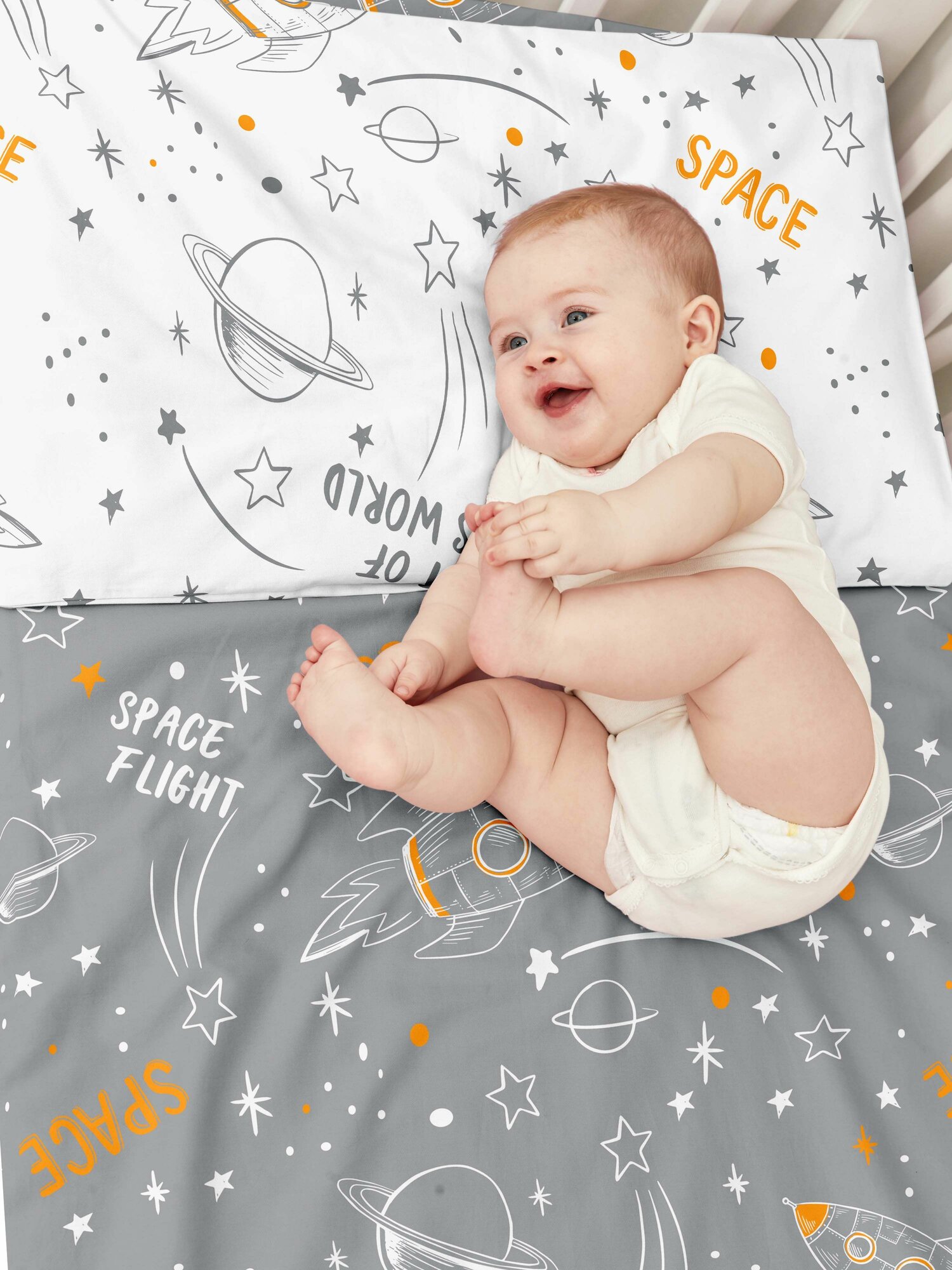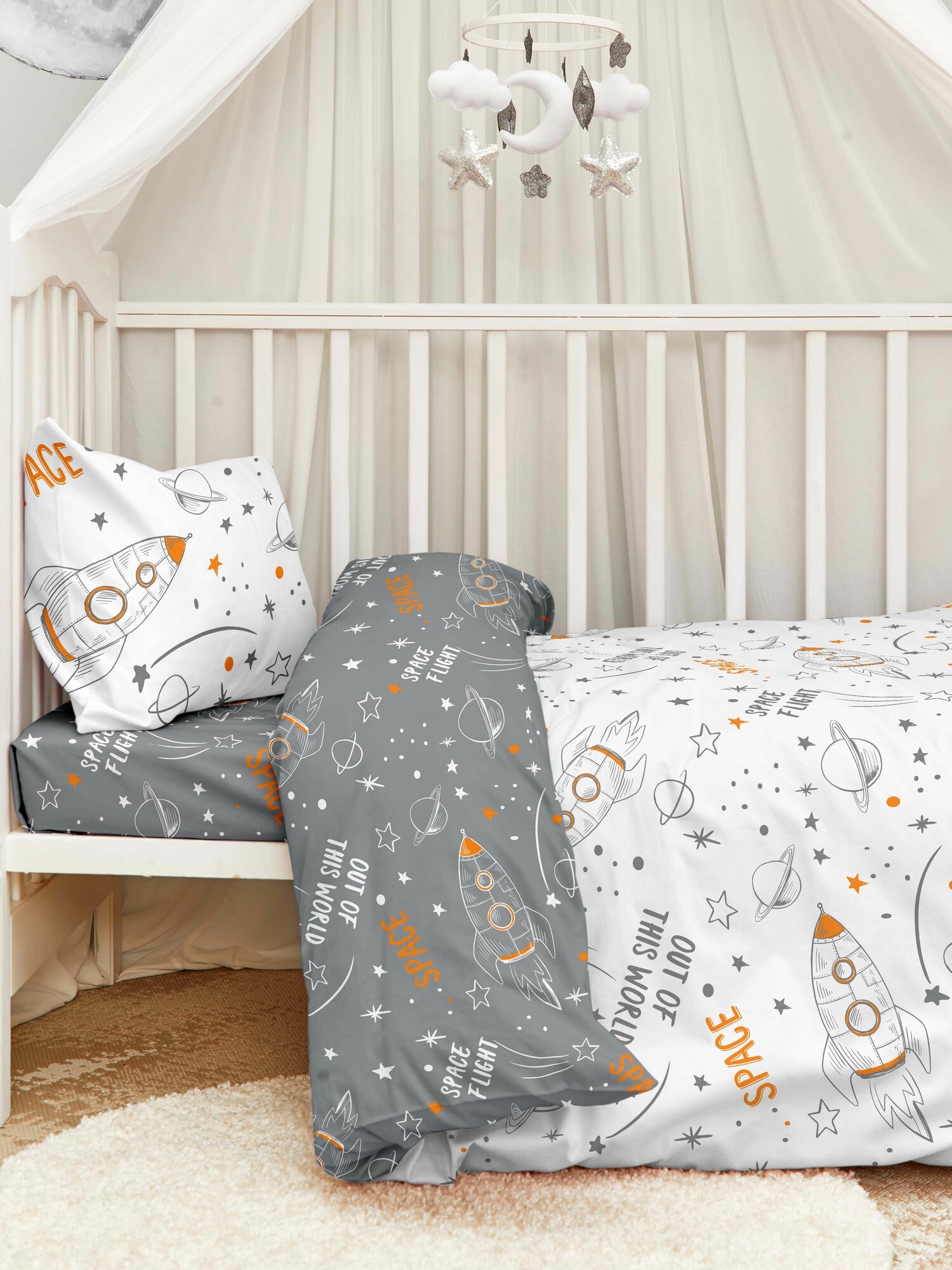 Купить Детское постельное белье в кроватку для новорожденного Juno, Поплин, нав. 40х60, Space white