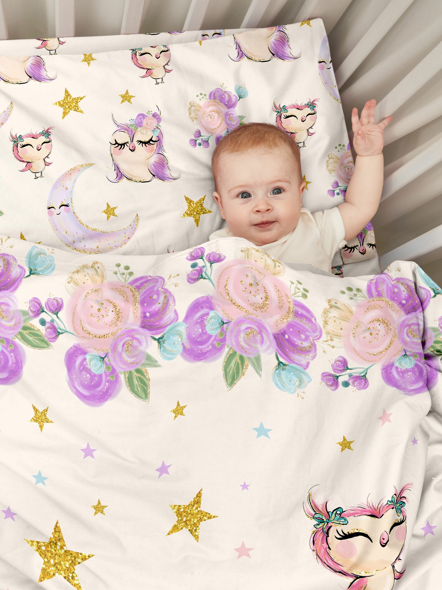 Купить Детское постельное белье в кроватку для новорожденного Juno, Поплин, нав. 40х60, Owls