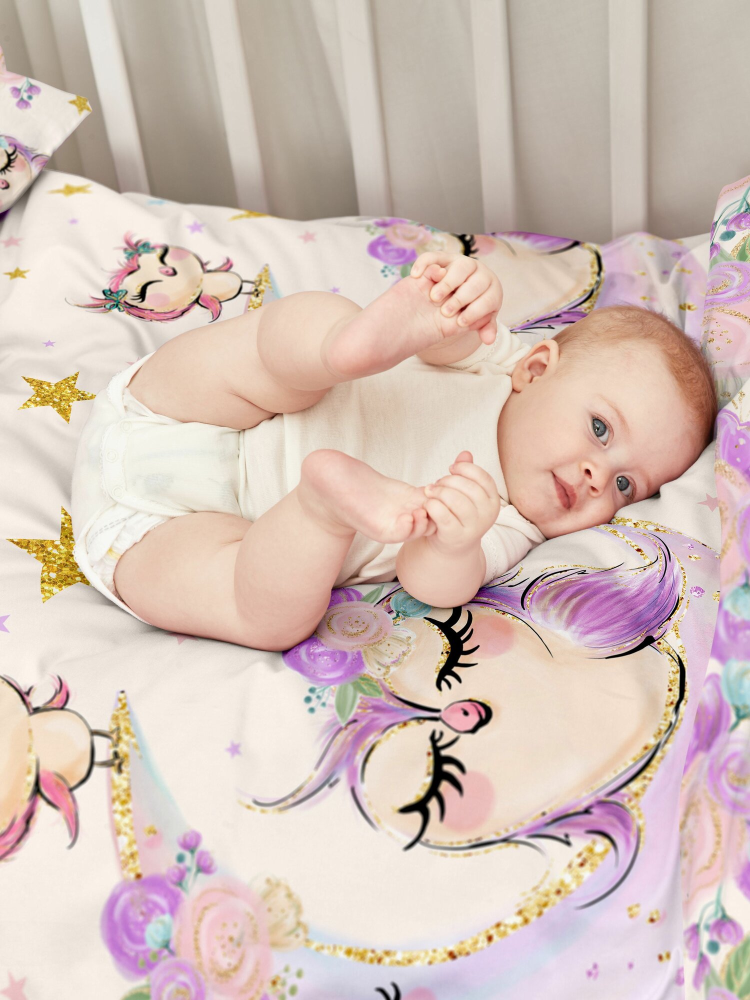 Детское постельное белье в кроватку для новорожденного Juno, Поплин, нав. 40х60, Unicorns
