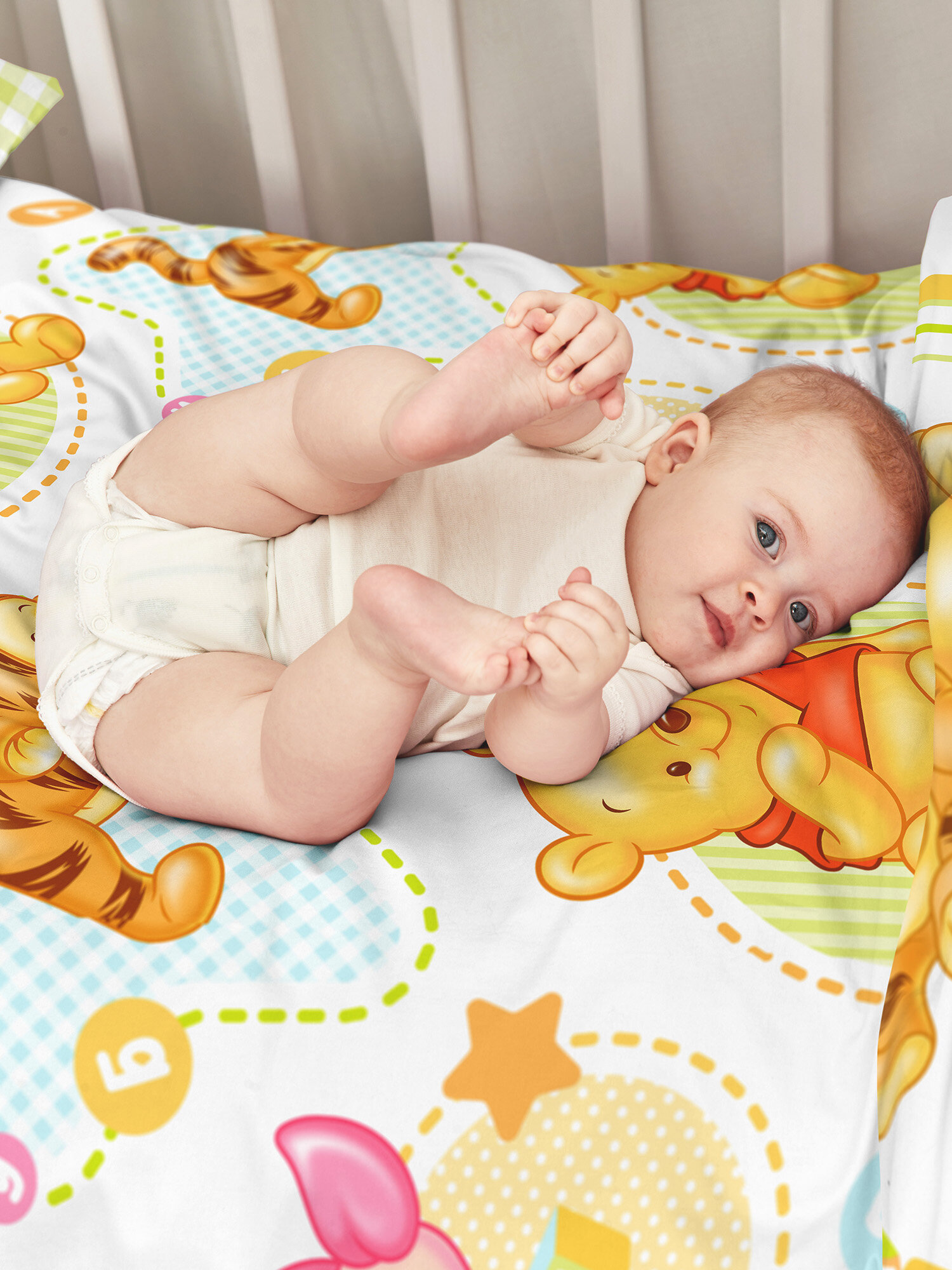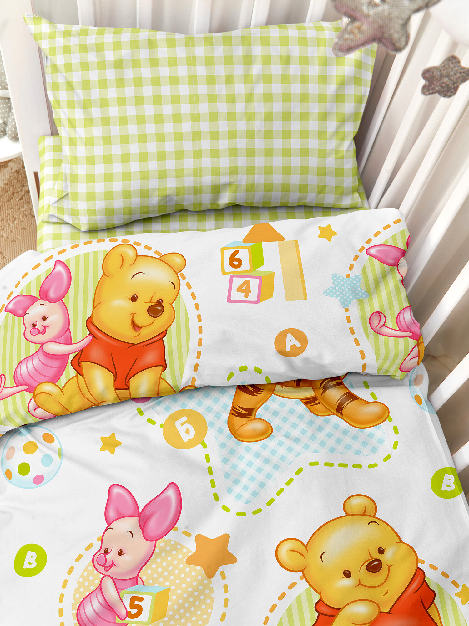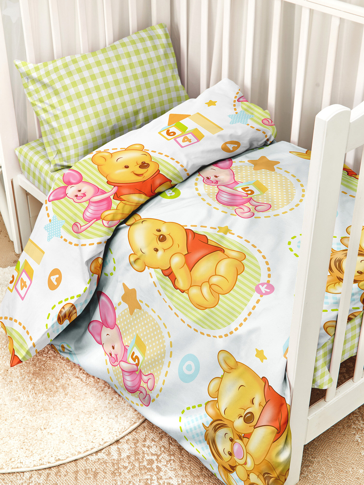 Купить Детское постельное белье в кроватку для новорожденного Juno, Поплин, нав. 40х60, Винни