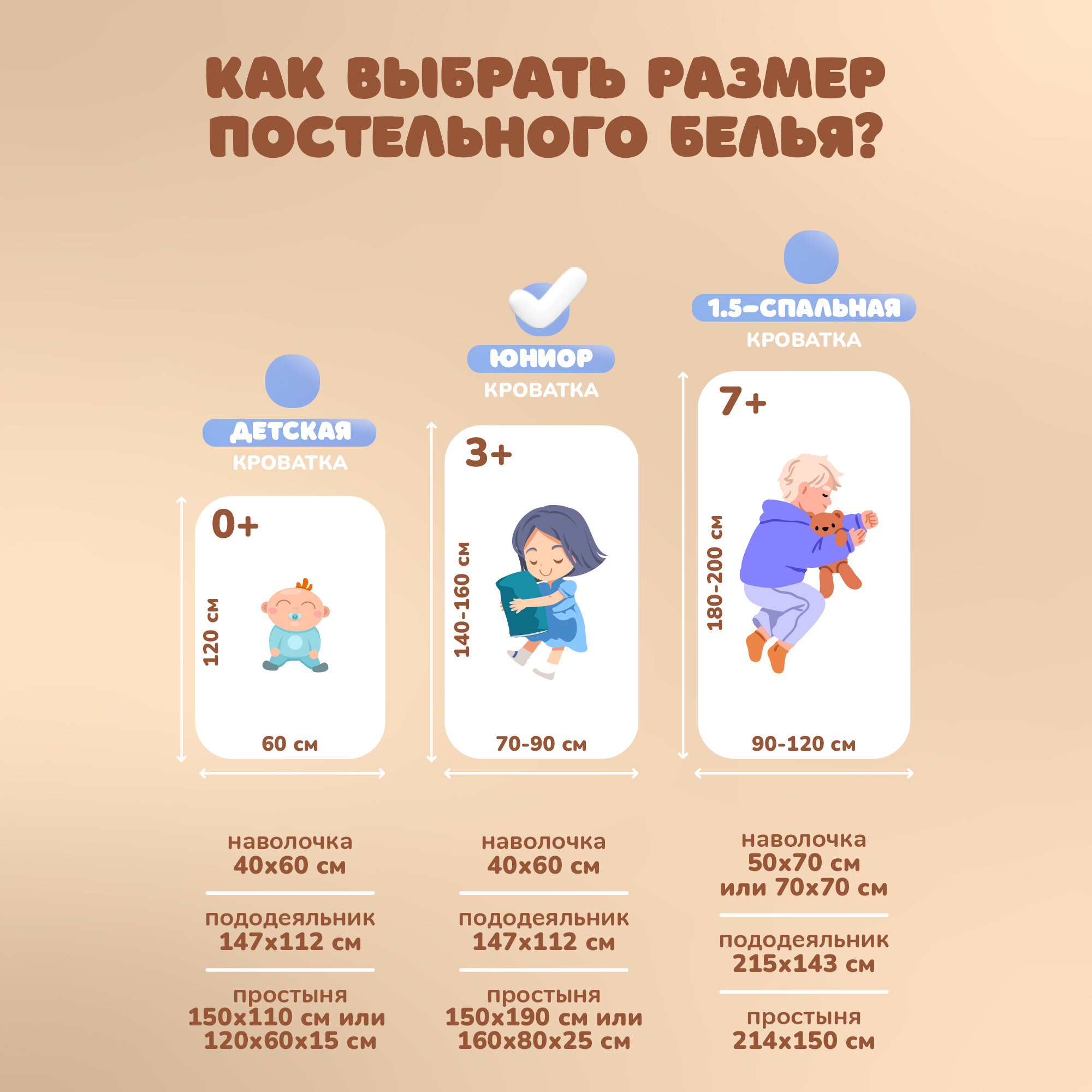 Детское постельное белье в кроватку Juno, Поплин, для матрасов 160х80 см, нав. 40х60, Foxi