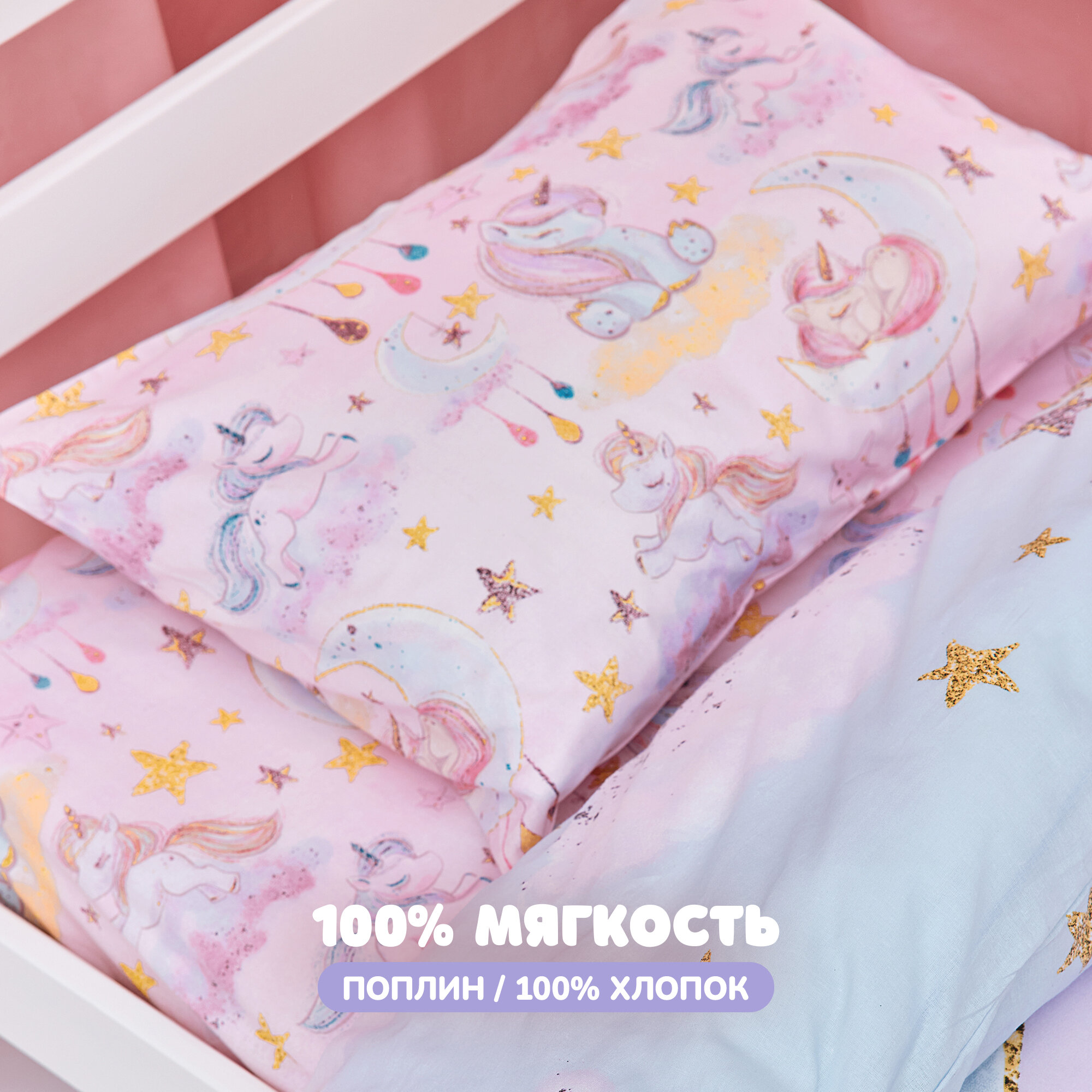 Купить Детское постельное белье в кроватку Juno, Поплин, для матрасов 160х80 см, нав. 40х60, Sleep unicorn