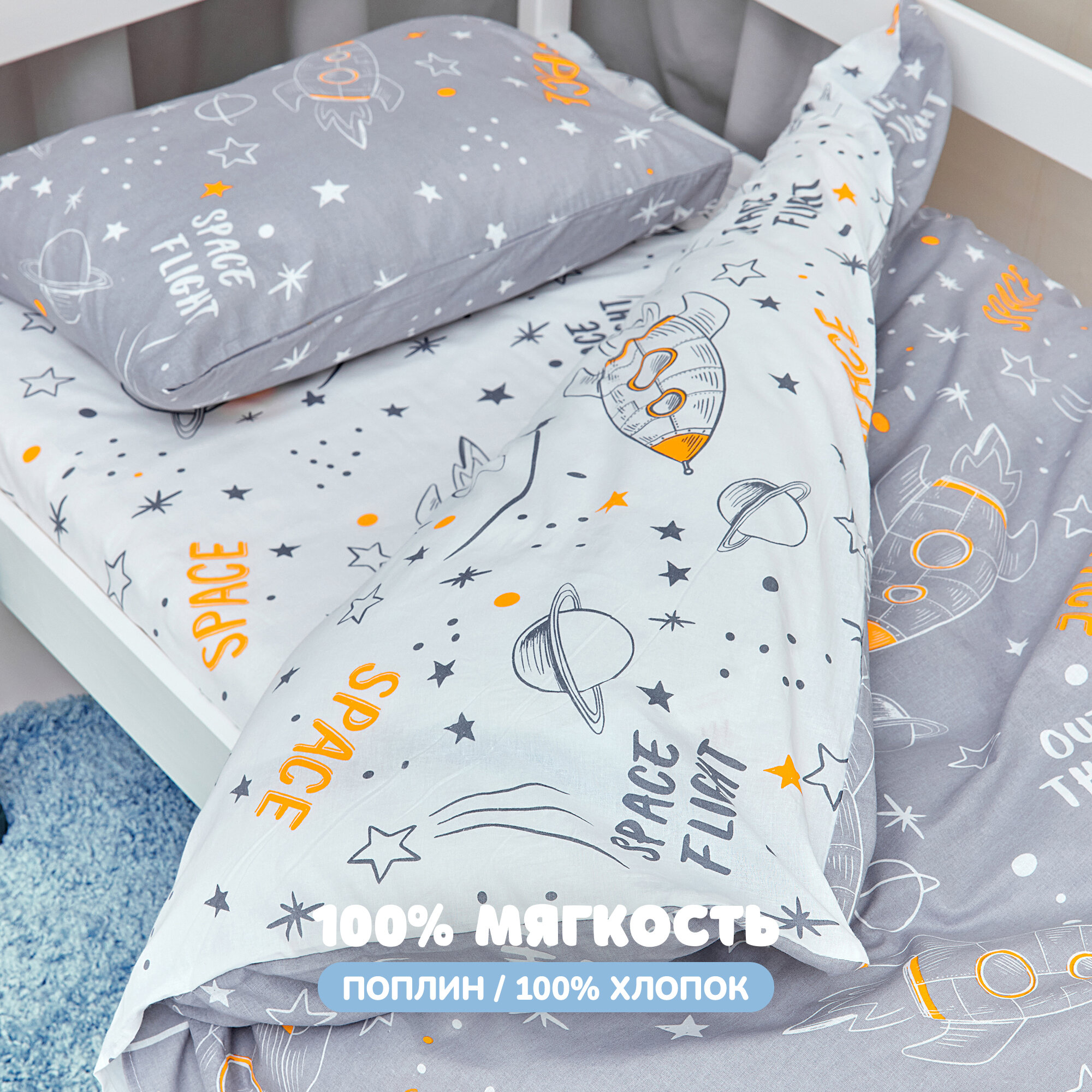 СохранитьДетское постельное белье в кроватку Juno, Поплин, для матрасов 160х80 см, нав. 40х60, Space grey интересное: