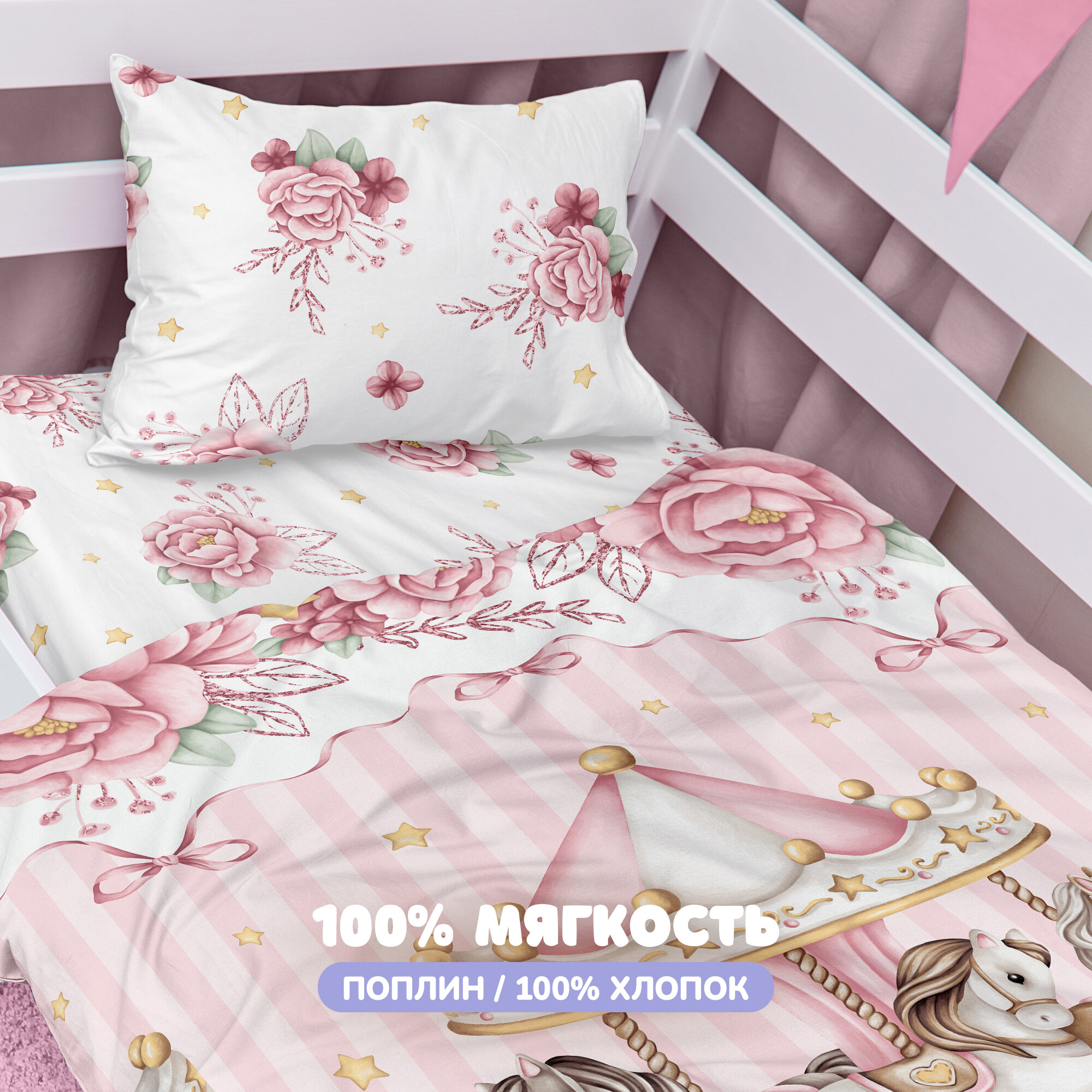 Купить Детское постельное белье в кроватку Juno, Поплин, для матрасов 160х80 см, нав. 40х60, Карусель