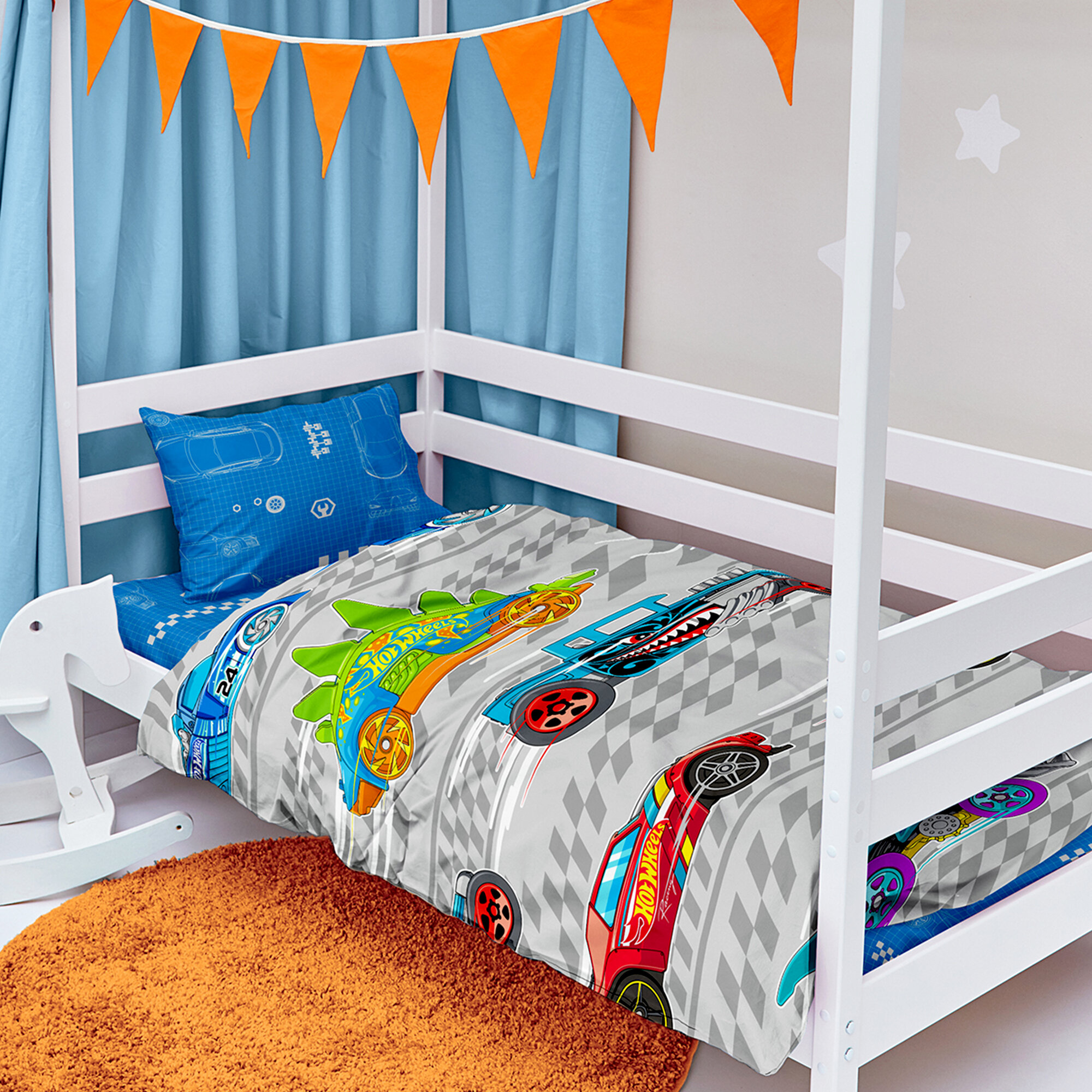 Купить Детское постельное белье в кроватку Juno, Поплин, для матрасов 160х80 см, нав. 40х60, Гоночные машинки