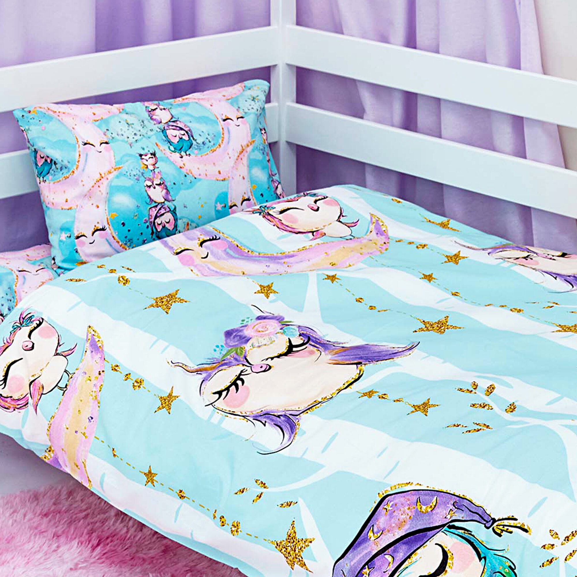 Детское постельное белье в кроватку Juno, Поплин, для матрасов 160х80 см, нав. 40х60, Sleep unicorn