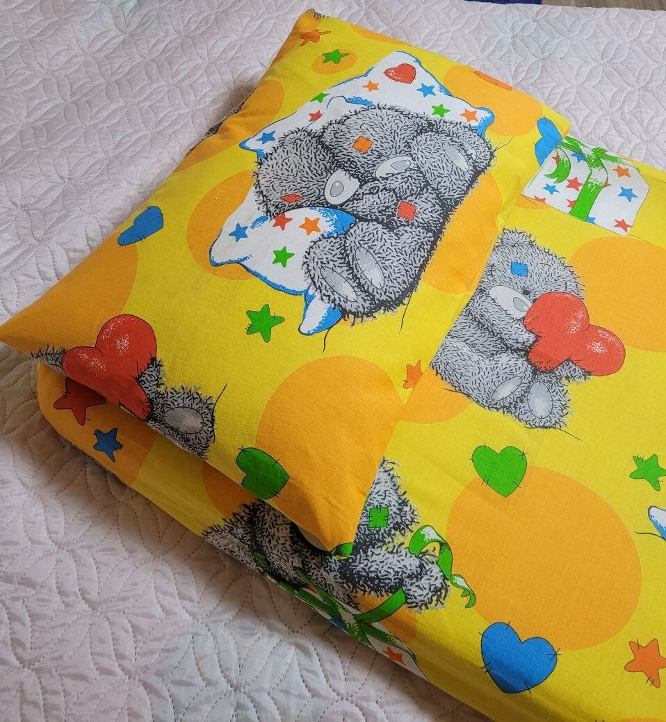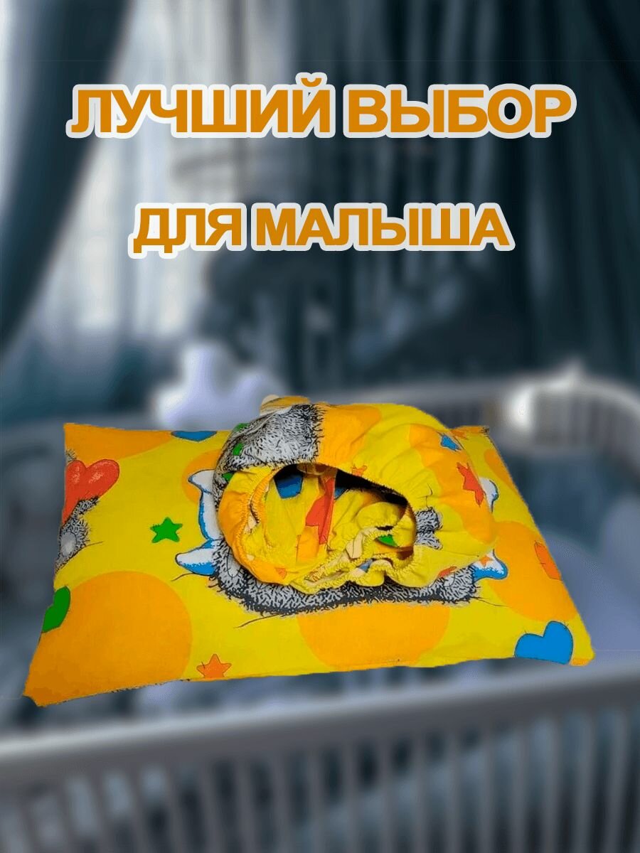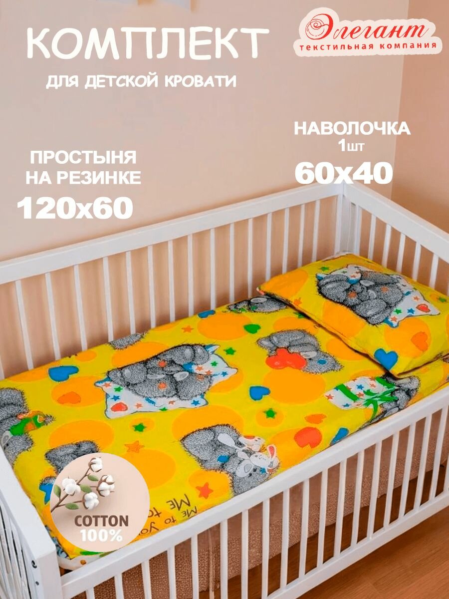 Простыня на резинке 1 шт, 60х120 см и наволочка 1 шт, 40х60см Тедди, Хлопок. Комплект в кроватку новорожденного. интересное: