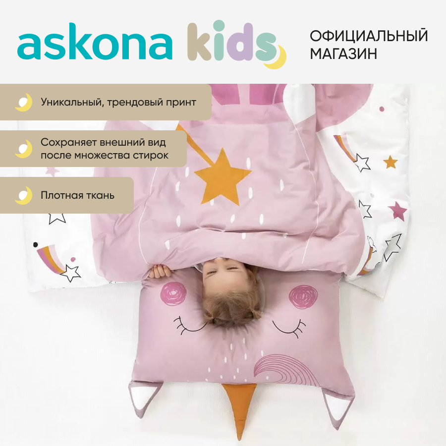 СохранитьПостельное белье Askona kids (Аскона) Единорог односпальный 140x205 интересное: