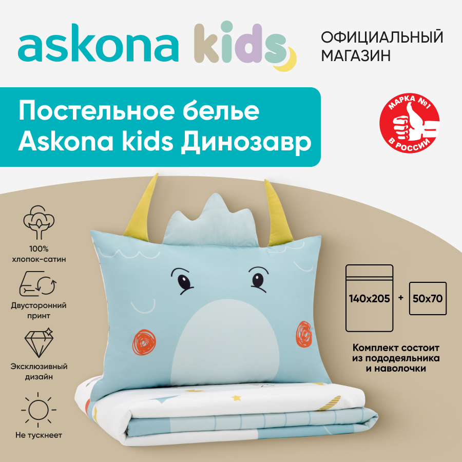 СохранитьПостельное белье Askona kids (Аскона) Динозавр односпальный 140x205 интересное: