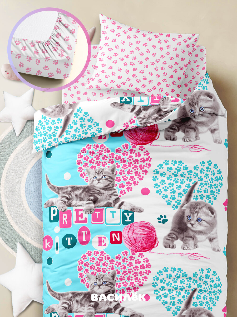 Купить Детское постельное белье Василек юниор на резинке 160х80 см, Бязь, Pretty Kitten