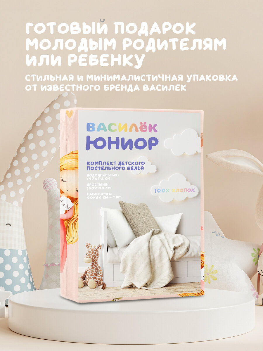 Детское постельное белье Василек юниор на резинке 160х80 см, Бязь, Pretty Kitten