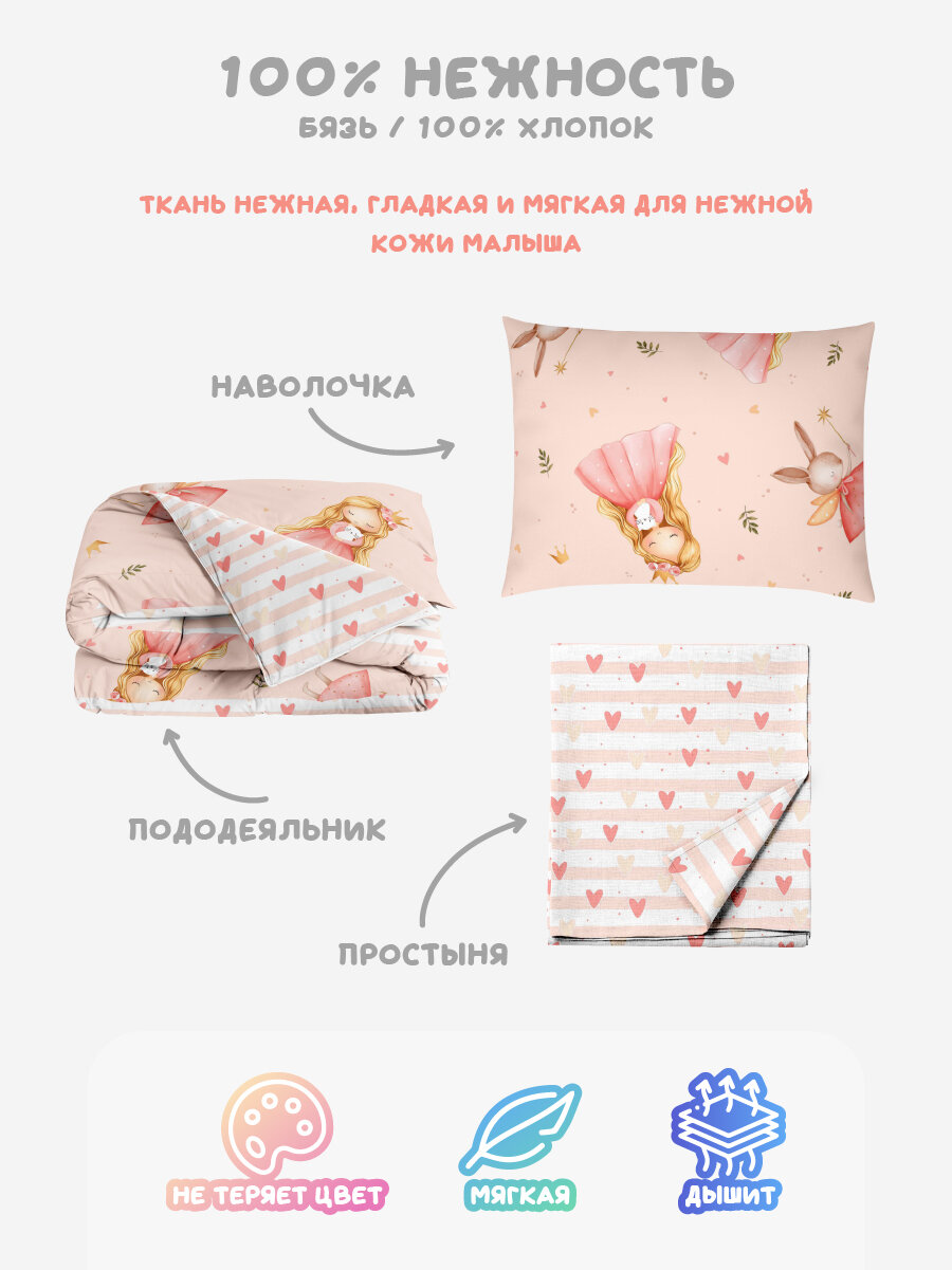 СохранитьДетское постельное белье Василек юниор, Бязь, хлопок 100%, Королевство снов интересное: