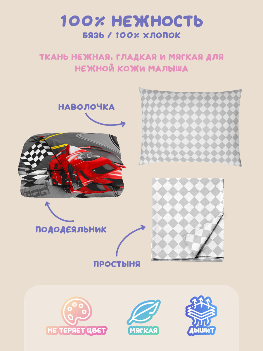 СохранитьДетское постельное белье Василек юниор, Бязь, хлопок 100%, Гонки интересное: