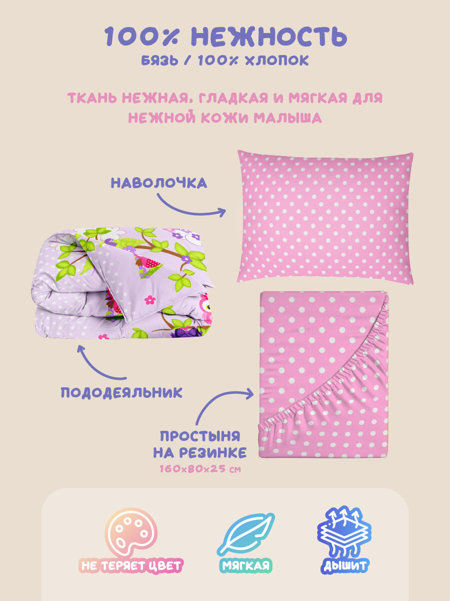 СохранитьДетское постельное белье Василек юниор на резинке 160х80 см, Бязь, Совушки интересное: