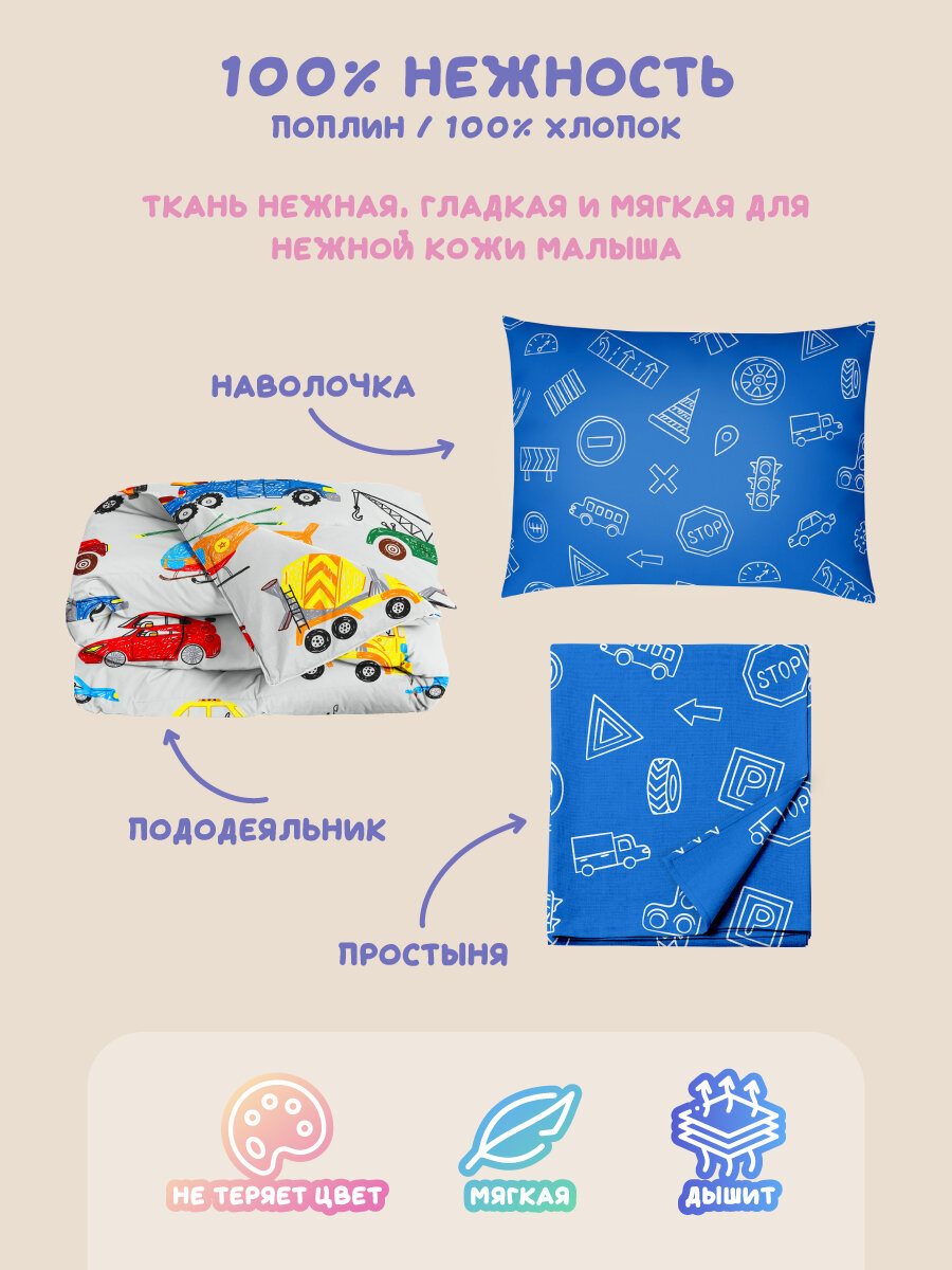 СохранитьДетское постельное белье Василек юниор, Поплин, хлопок 100%, Машинки интересное: