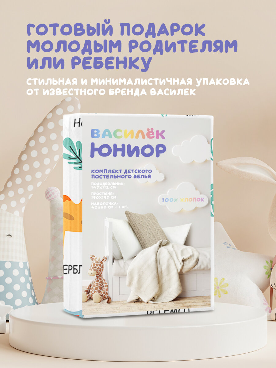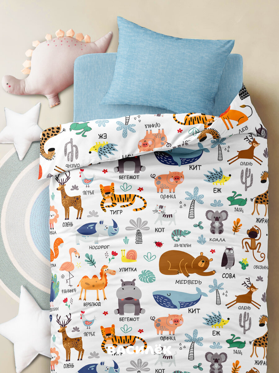 СохранитьДетское постельное белье Василек юниор, Поплин, хлопок 100%, Зверята интересное: