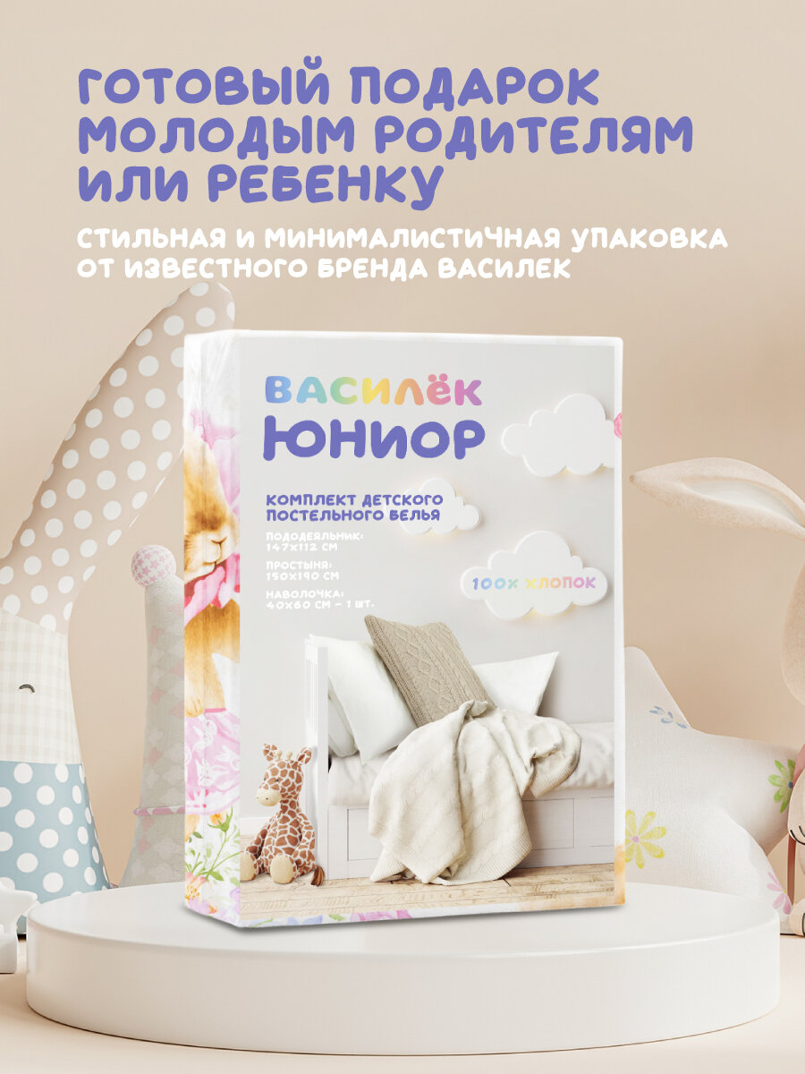 СохранитьДетское постельное белье Василек юниор, Поплин, хлопок 100%, Зайки интересное: