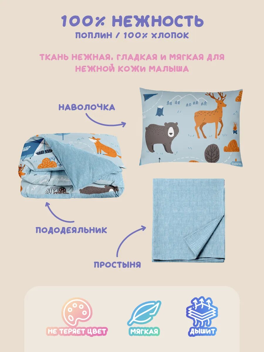 Детское постельное белье Василек юниор, Поплин, хлопок 100%, Олененок