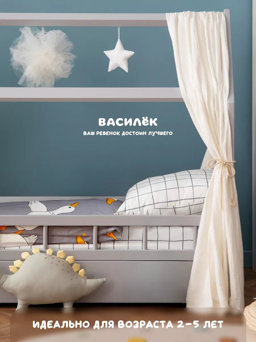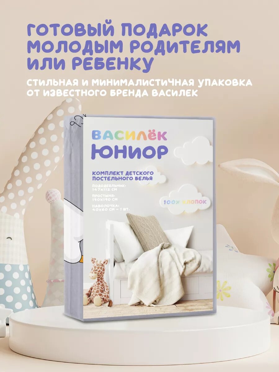 Детское постельное белье Василек юниор на резинке 160х80 см, Поплин, Гусь обнимусь