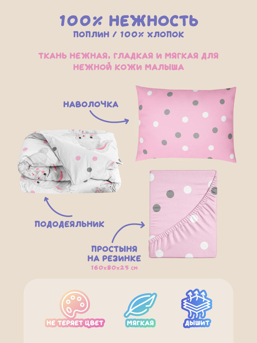 Детское постельное белье Василек юниор на резинке 160х80 см, Поплин, бегемот Му Денг