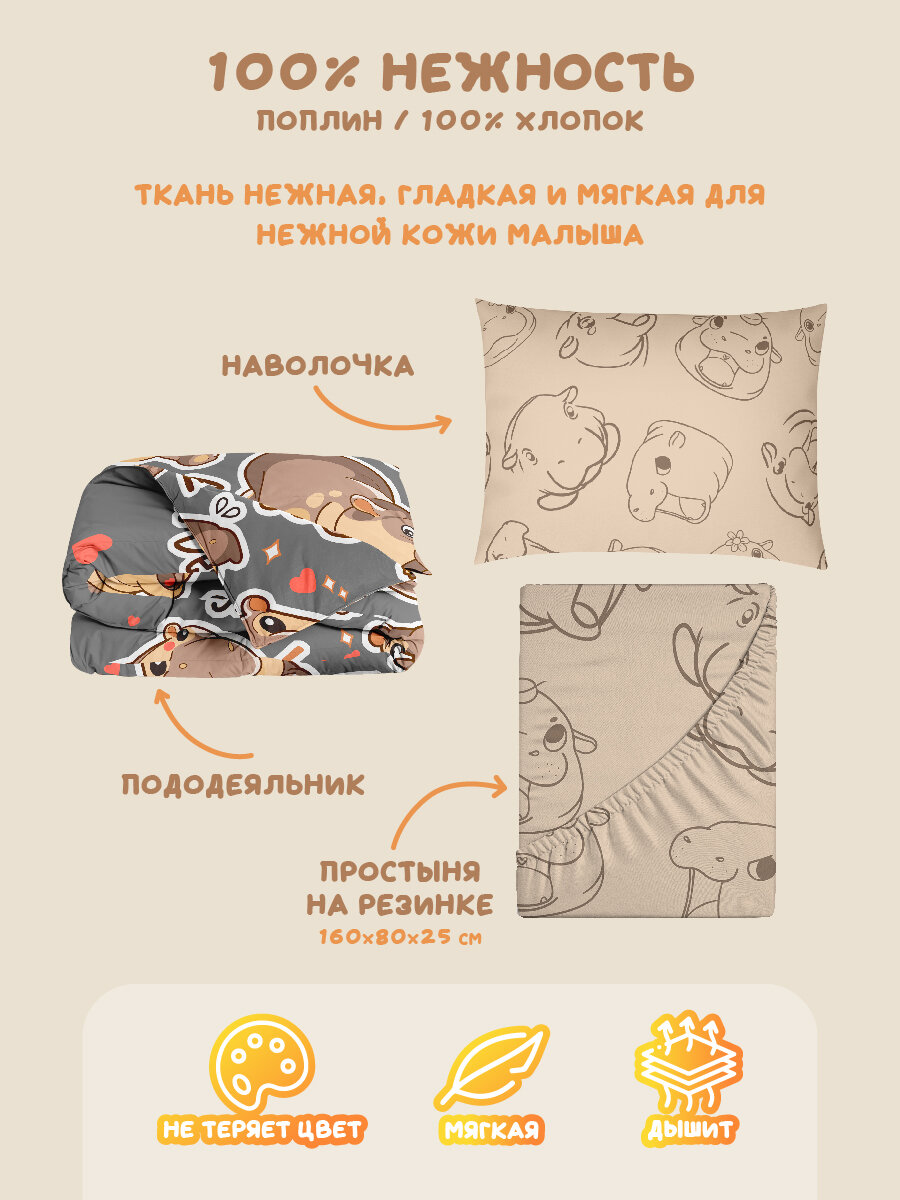 Детское постельное белье Василек юниор на резинке 160х80 см, Поплин, Капибара
