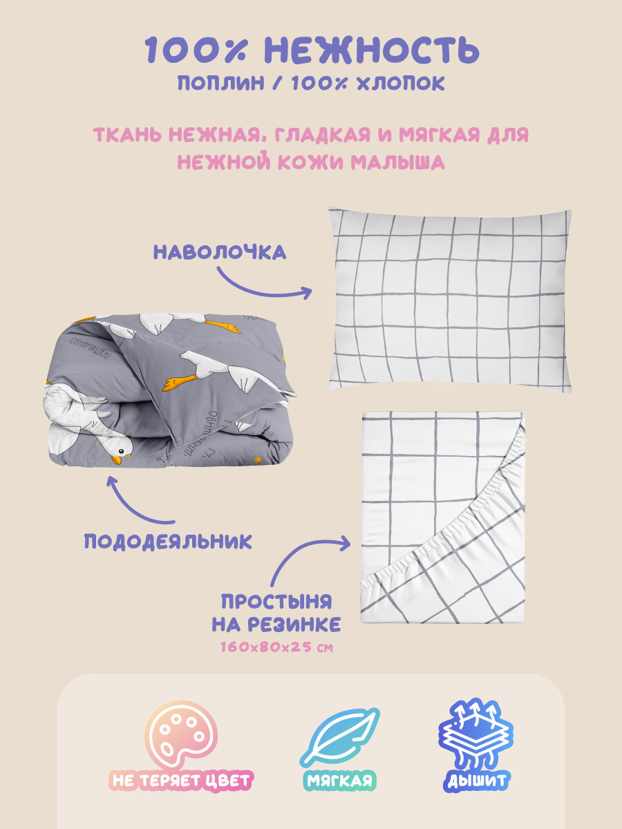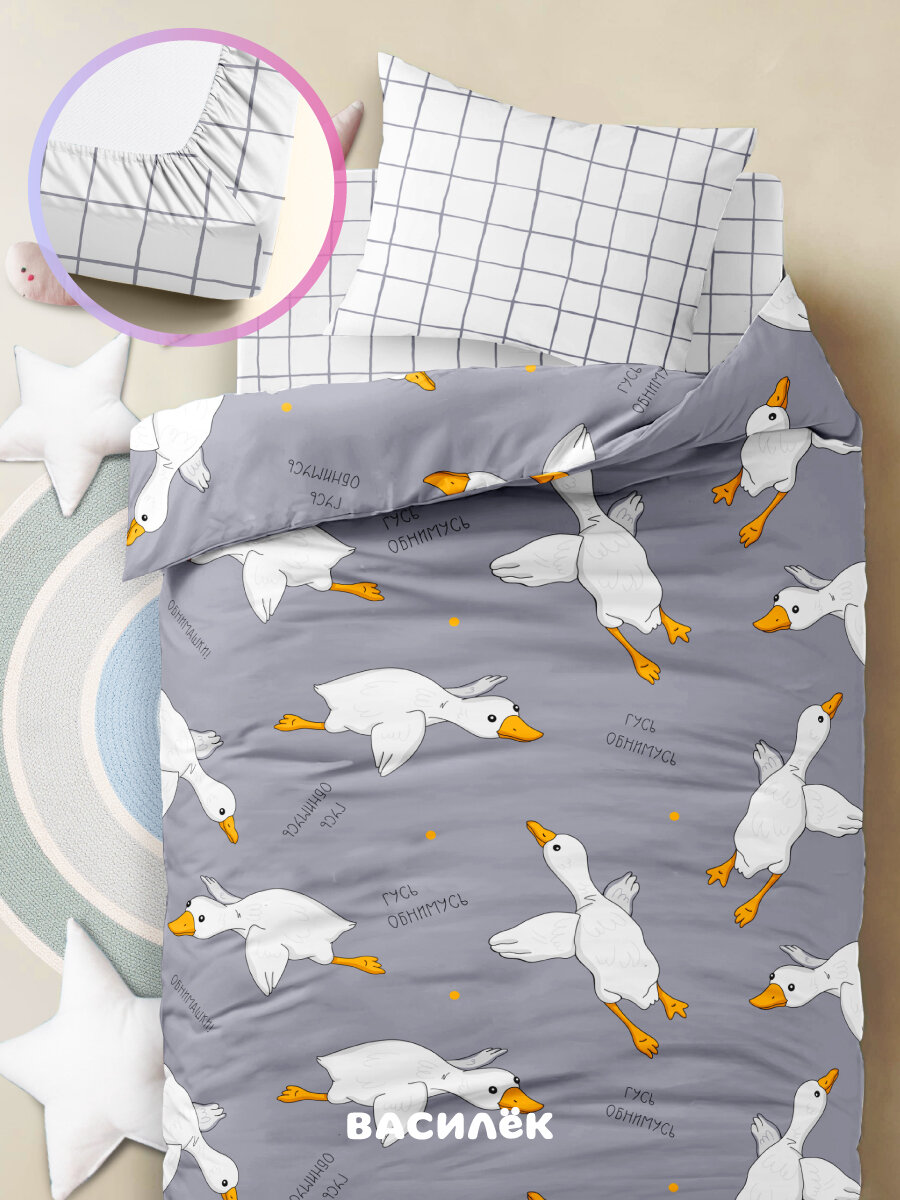 СохранитьДетское постельное белье Василек юниор на резинке 160х80 см, Поплин, Гусь обнимусь интересное: