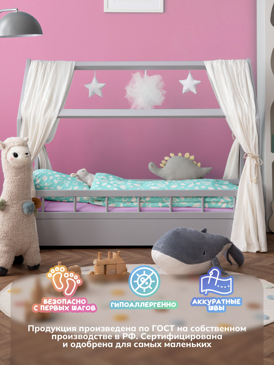 Детское постельное белье Василек юниор на резинке 160х80 см, Поплин, Дино